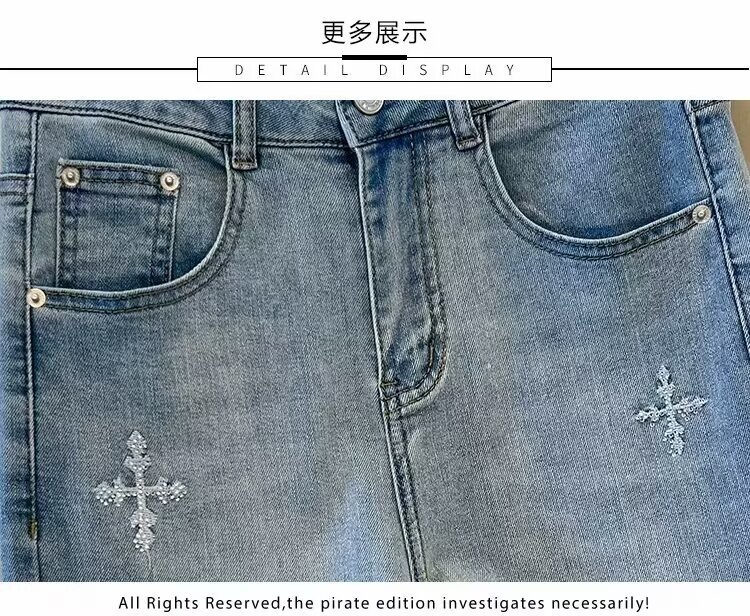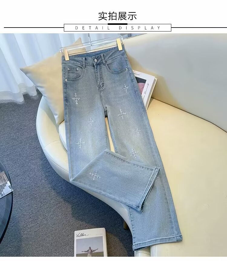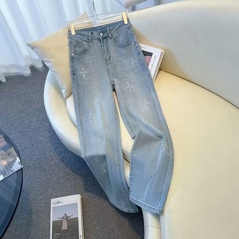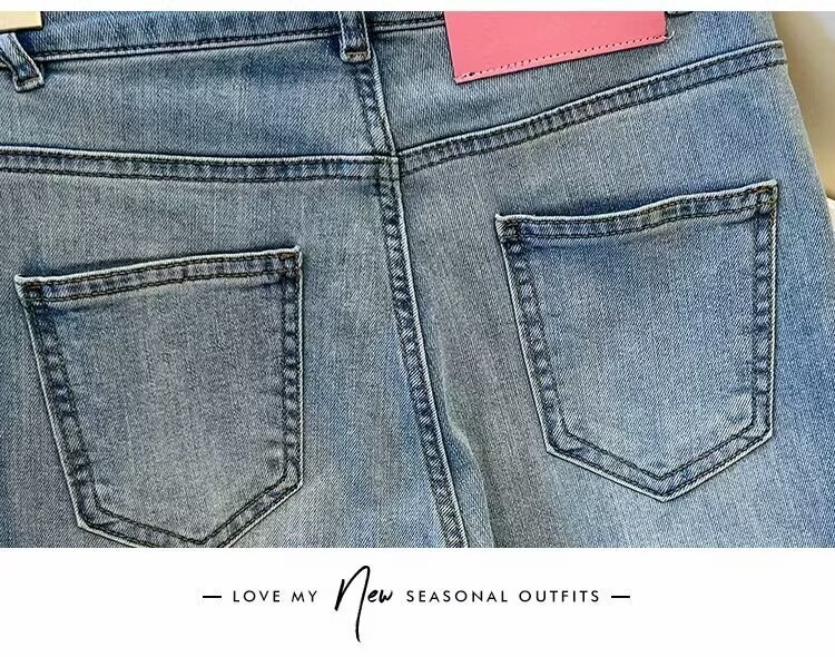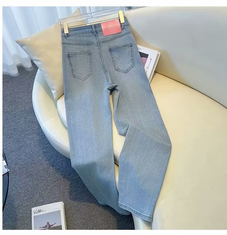 가을 2024 새로운 핫 드릴링 나비 고층 워시 청바지 여성 패션 슬리밍 좁은 스트레이트 다리 바지스토어 가기