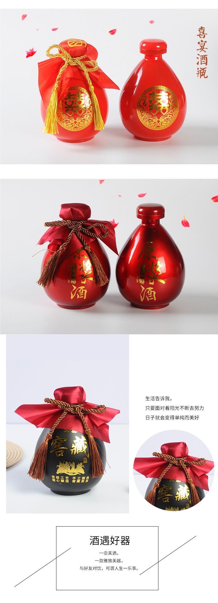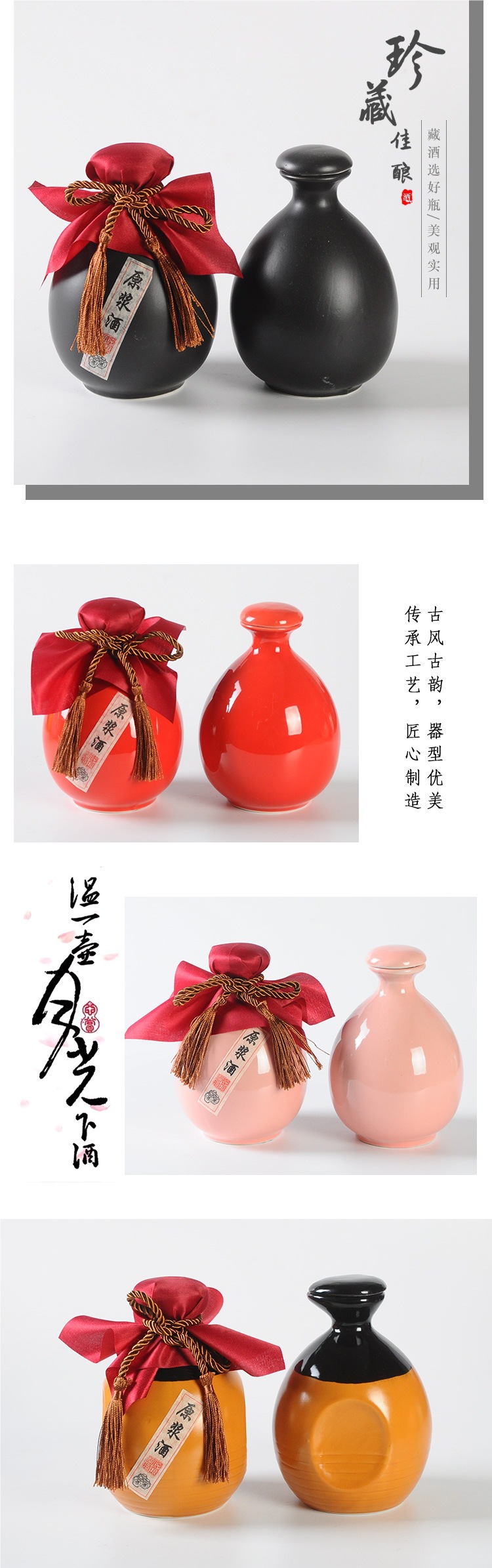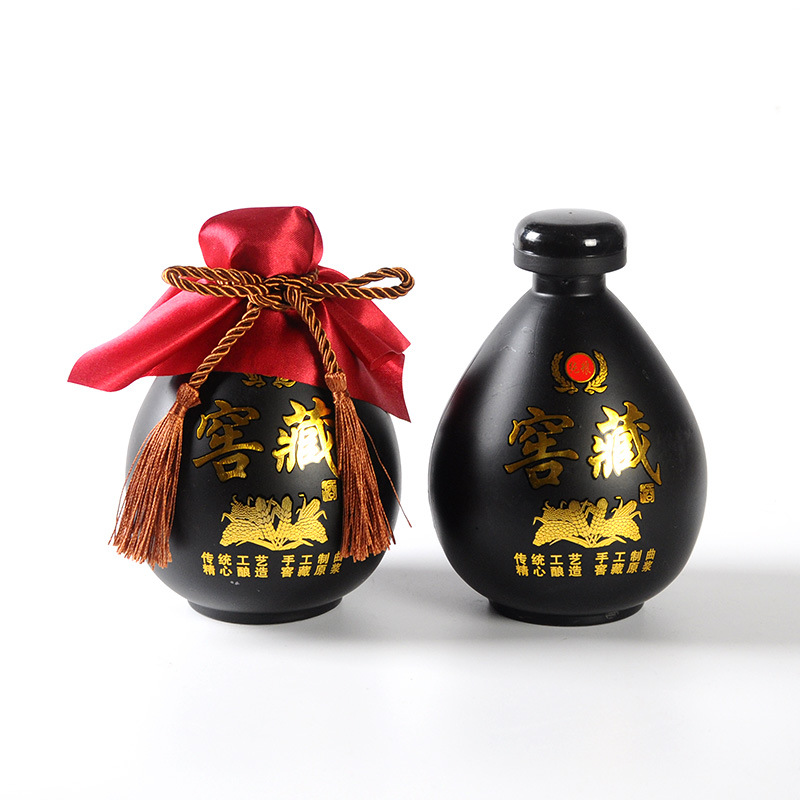 • 세라믹 검정색과 노란색 0.5kg 와인병 + 천 로프 필름