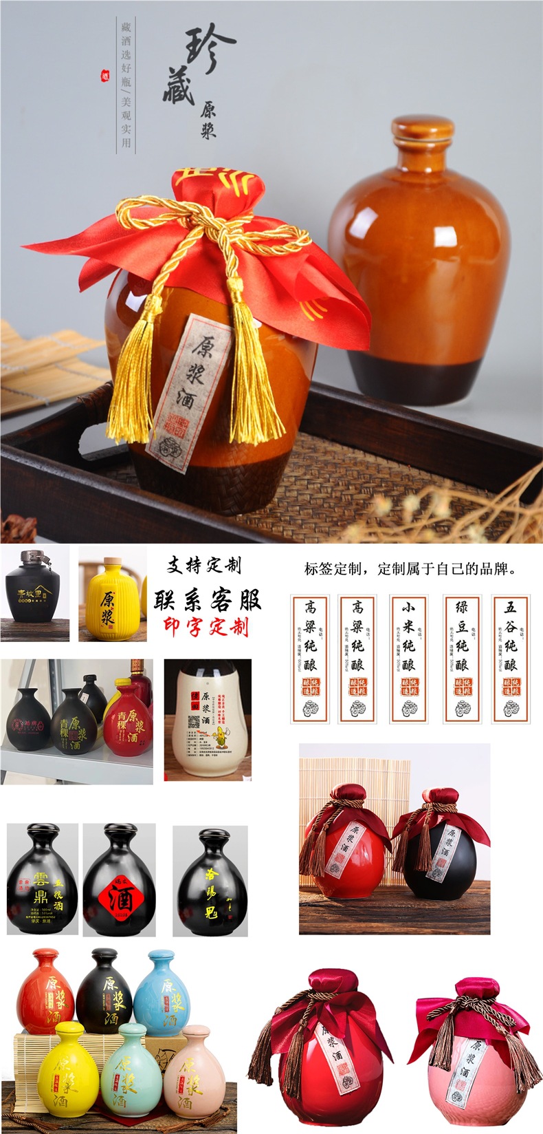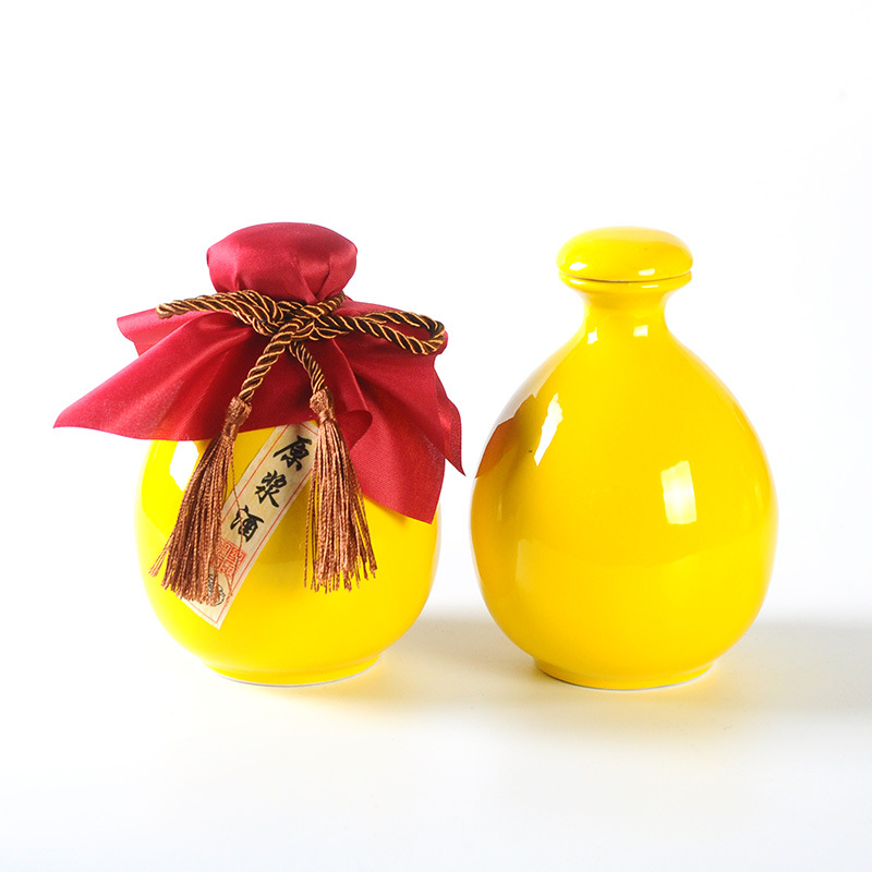 • 세라믹 노란색 0.5kg 와인 병 + 천 로프 필름