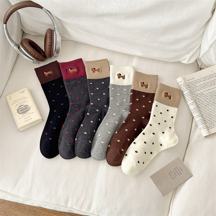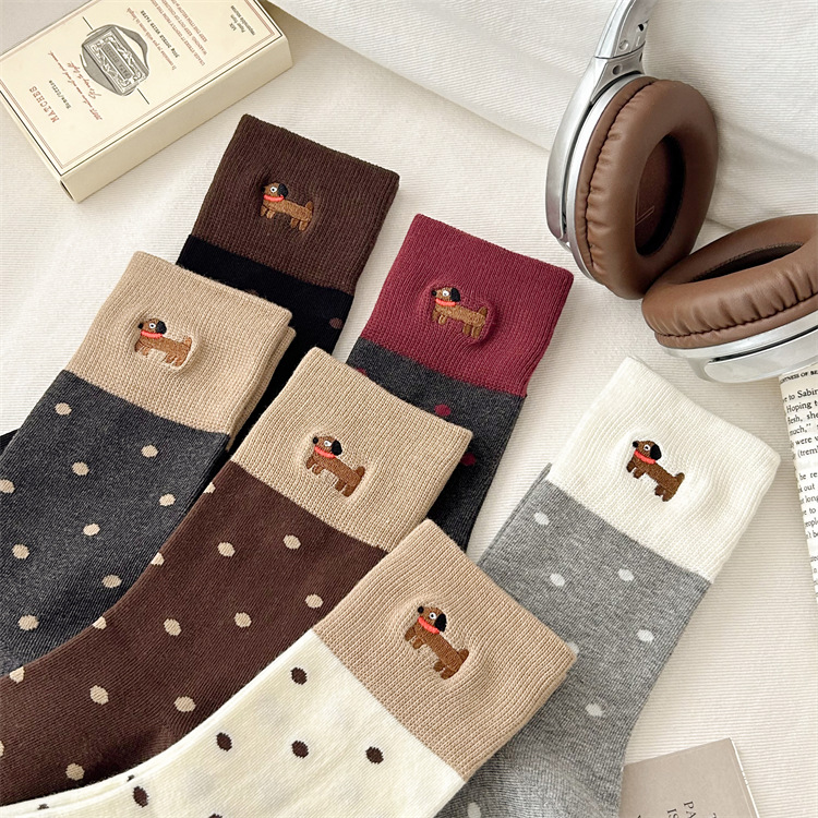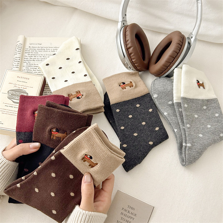 가을과 겨울 양말 아이들의 자수 귀여운 강아지 빗 면화 양말 한국식 도트 미디엄 양말 뼈없는 느슨한 입 쌓인 양말스토어 가기