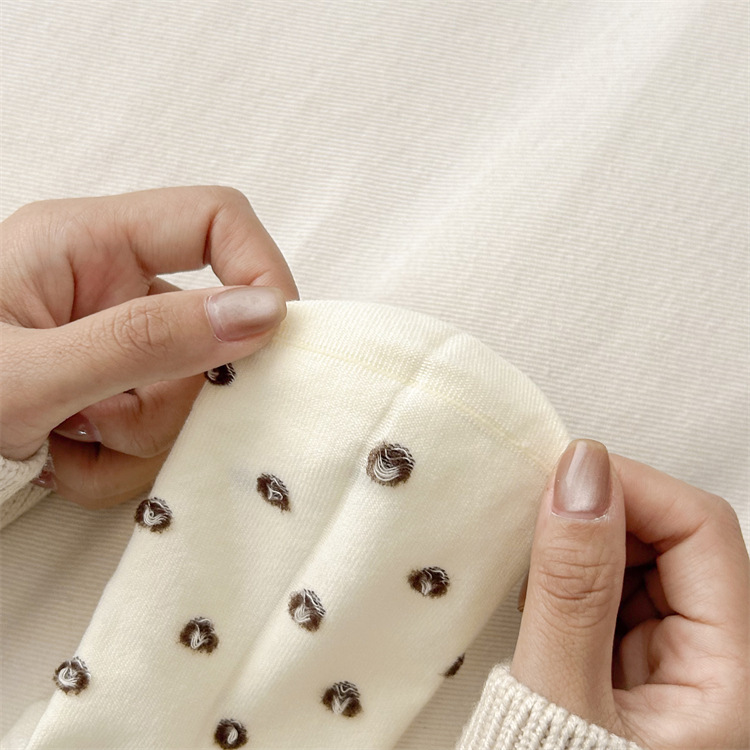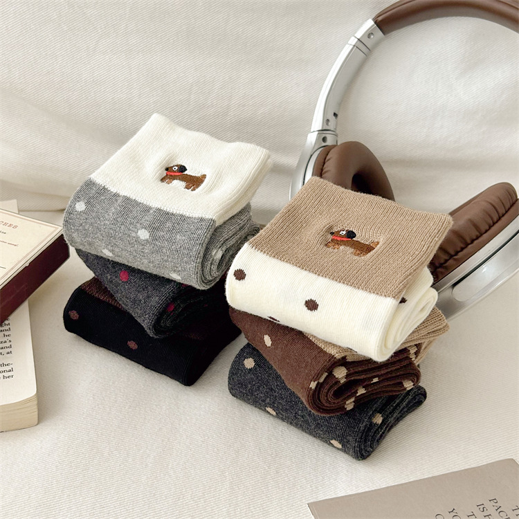 가을과 겨울 양말 아이들의 자수 귀여운 강아지 빗 면화 양말 한국식 도트 미디엄 양말 뼈없는 느슨한 입 쌓인 양말