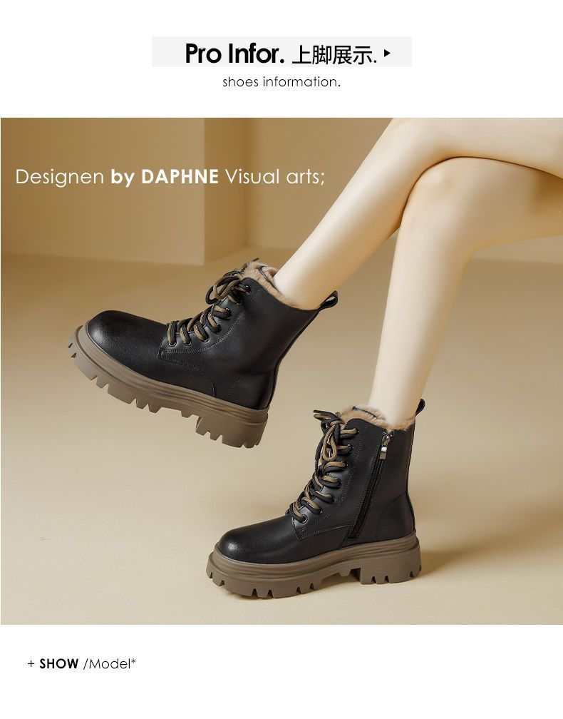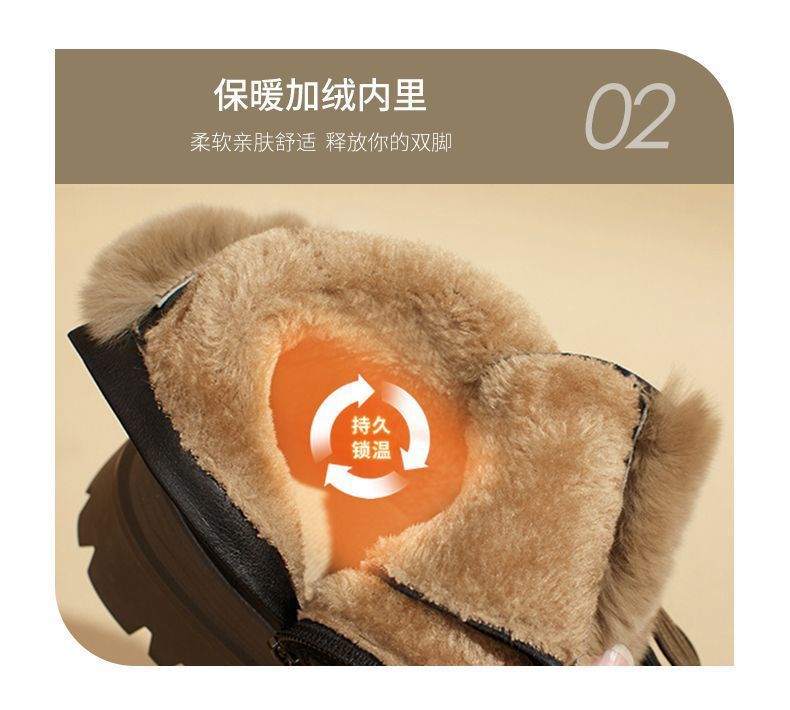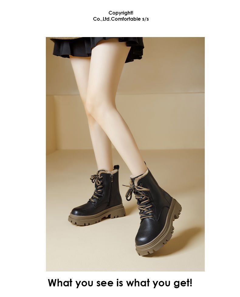 겨울 따뜻한 가죽 마틴 부츠 여성의 2023 겨울 폭발 기모 두꺼운 두꺼운 두꺼운 밑창 스노우 부츠 면화 증가