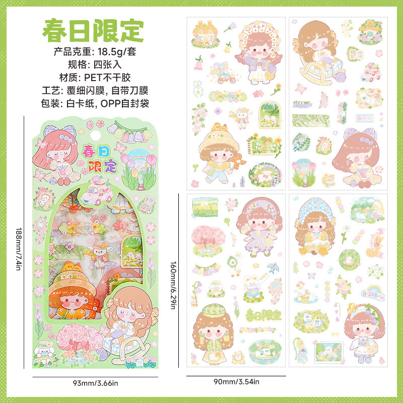 달콤한 소녀 세트 투명 방수 애완 동물 스티커 diy 손 계정 일기 스티커 국경 귀여운 아름다운 소녀 구 카드 스티커스토어 가기