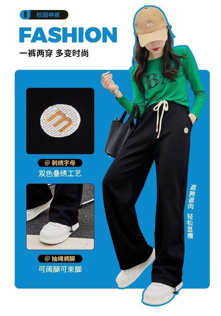 소녀 바지 가을과 겨울 2024 새로운 스타일 중대형 어린이 서양식 느슨한 스포츠 바지 어린이 캐주얼 스트레이트 와이드 다리 바지스토어 가기