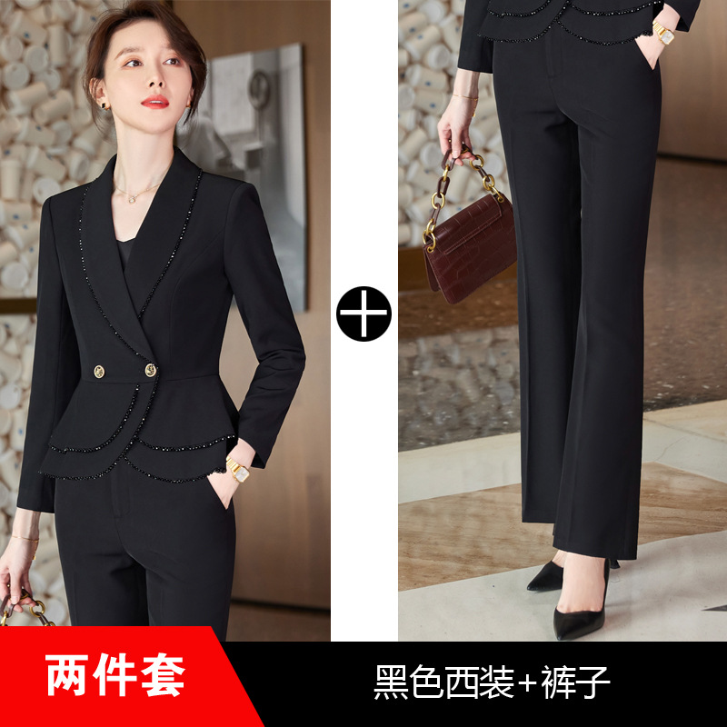 슬리밍 세트 세트 여성의 긴 소매 가을과 겨울 새로운 하이 엔드 패션 작은 샤넬 스타일 전문 세트 미용사 작업 옷