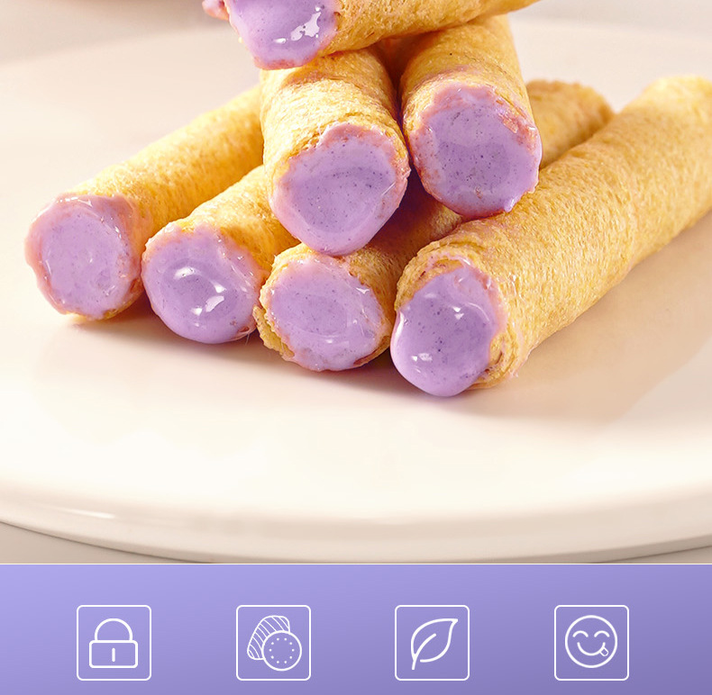 타로 우유 계란 크리스프 그물 레드 롤 사출 샌드위치 크리스프 하트 롤 계란 롤 비스킷 향수 레저 스낵 제조 업체