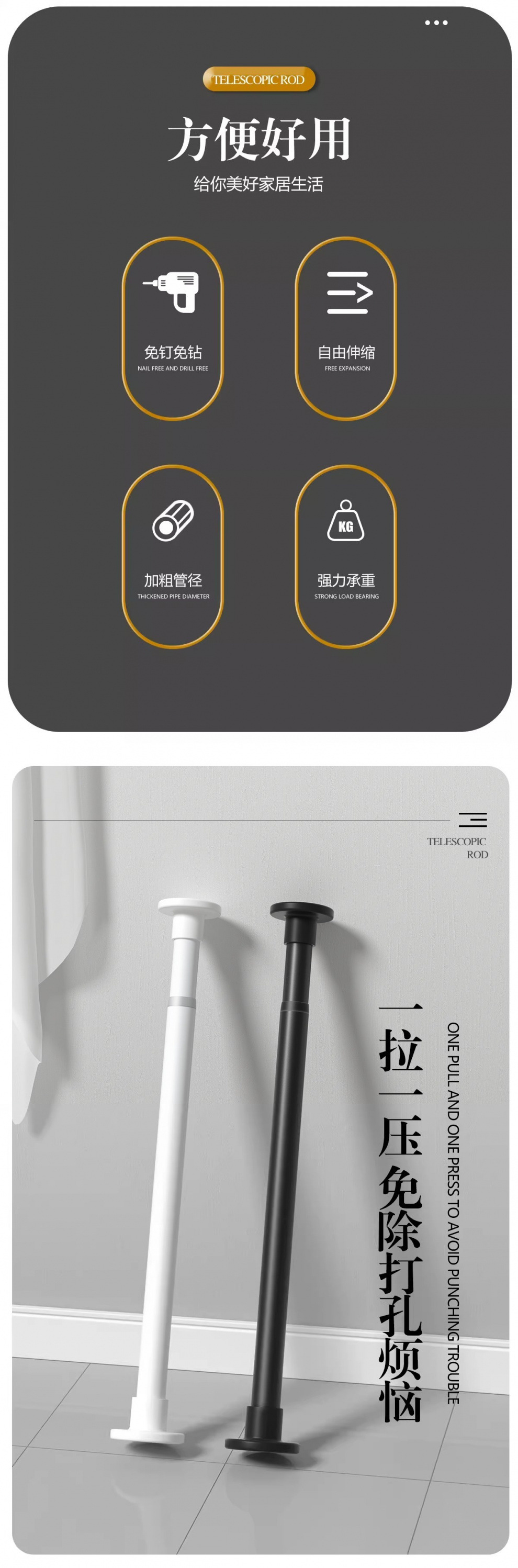리프팅 및 수축 가능한 옷을위한 펀치 프리 텔레스코픽 로드 건조 랙 다중 사용 막대 옷 건조 로드 침실 커튼 로드 욕실 샤워 커튼 로드