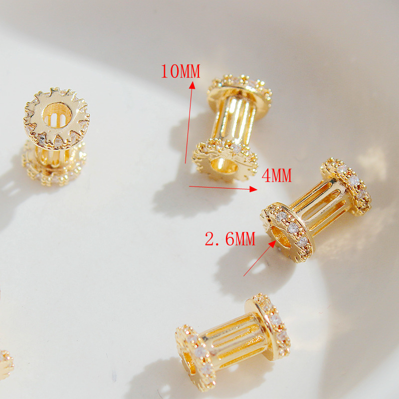 14K包金保色镶锆长柱大孔车轮隔珠立方体方形桶珠diy手串项链饰品