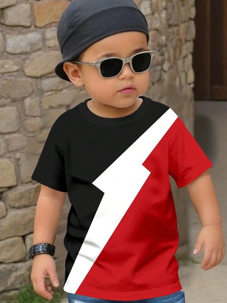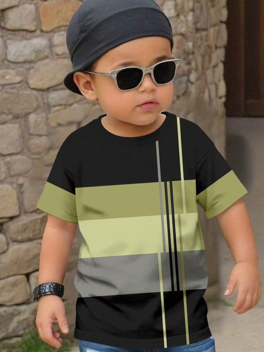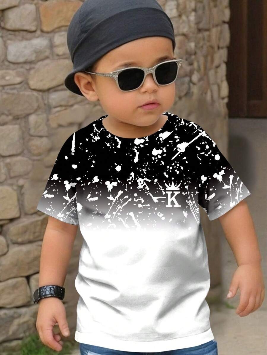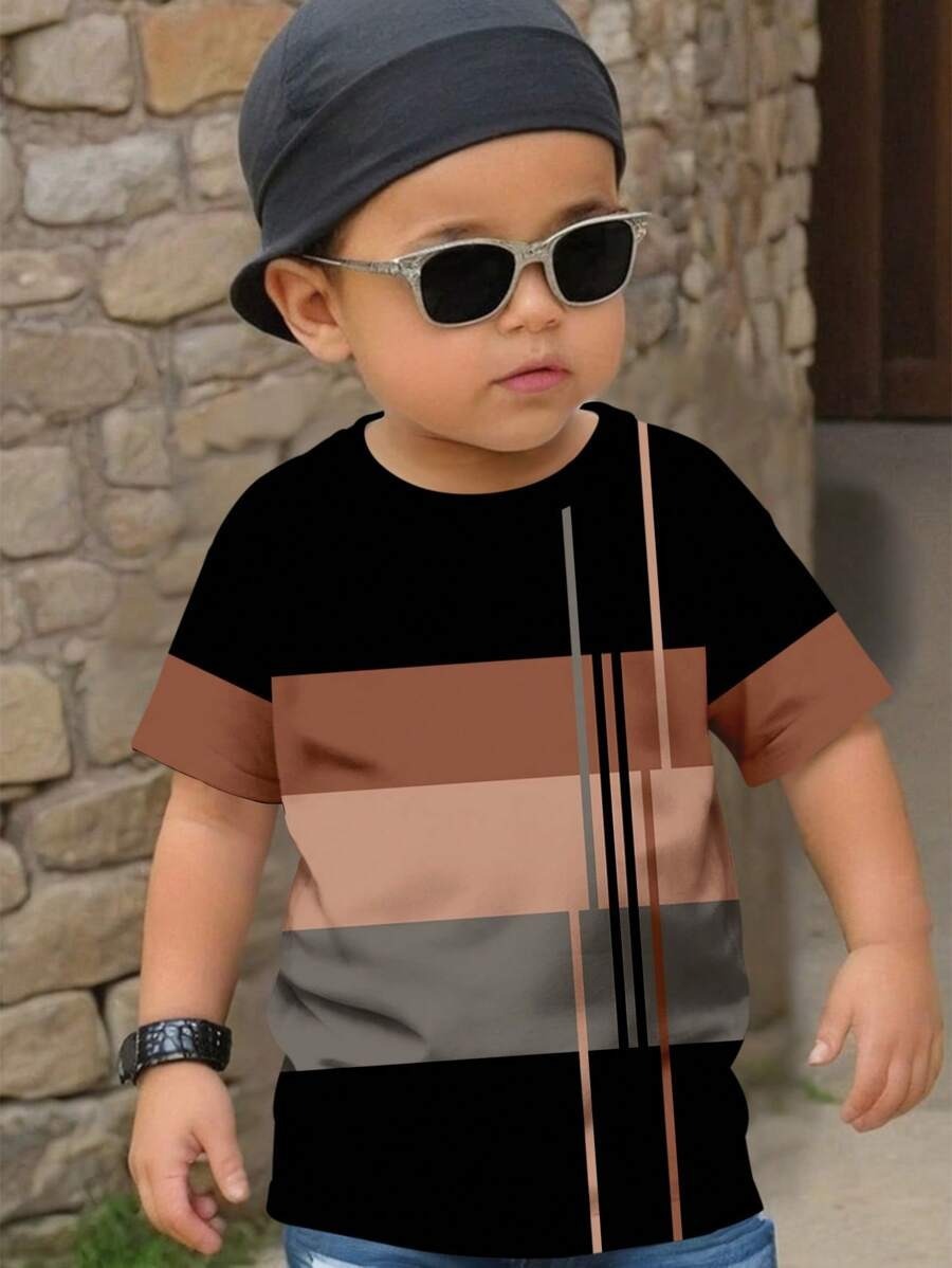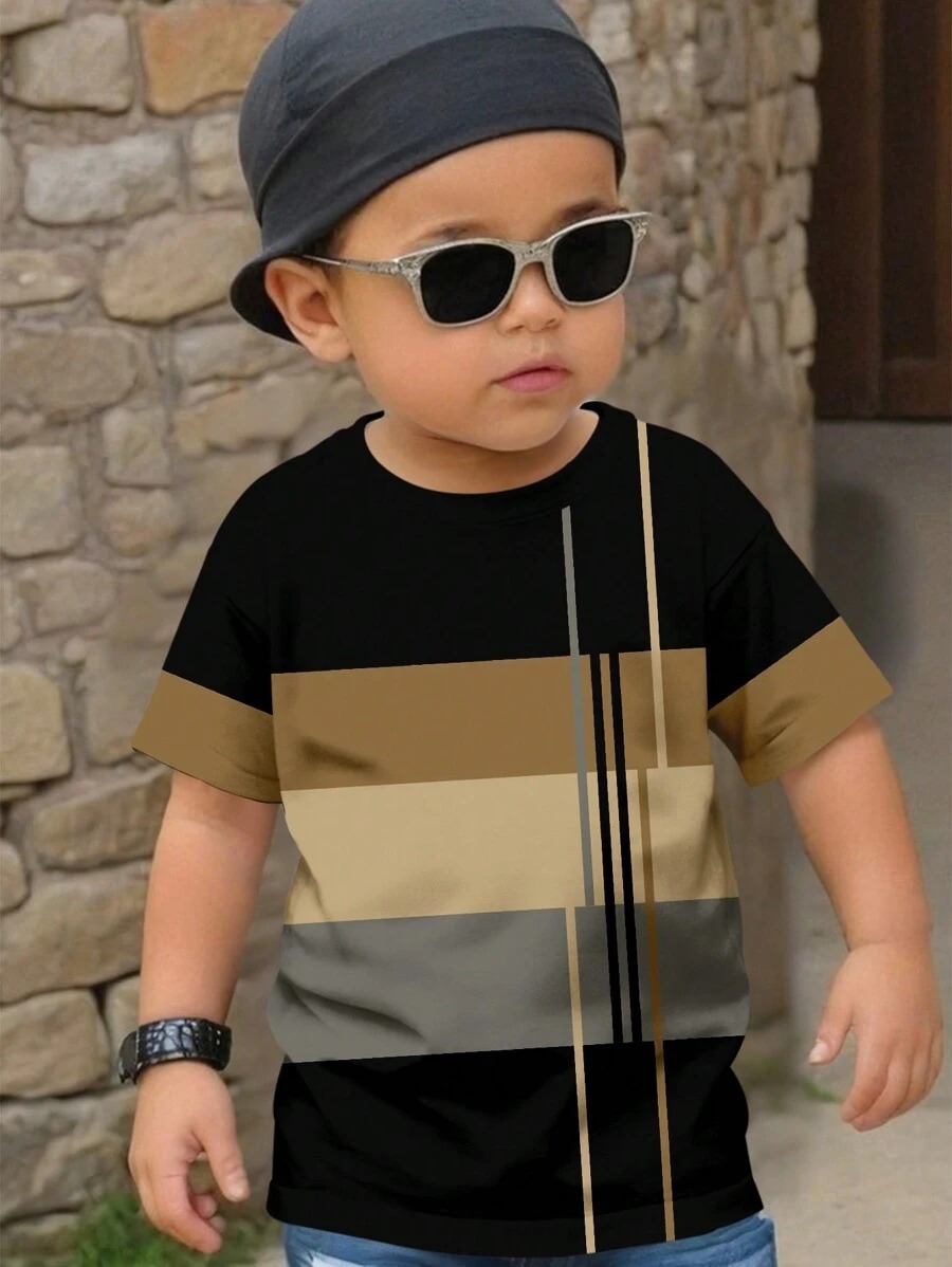 소년 티셔츠 반팔 어린이 느슨한 플러스 사이즈 T 큰 아이 뚱뚱한 소년의 기하학적 인쇄 탑 RA01