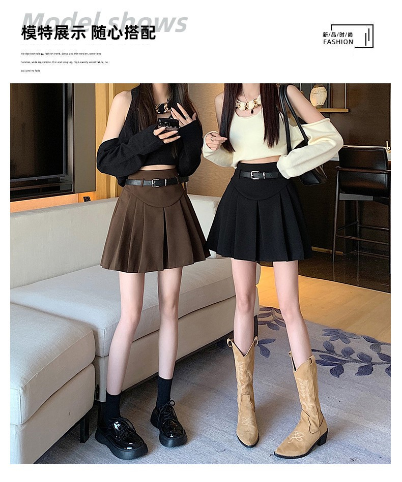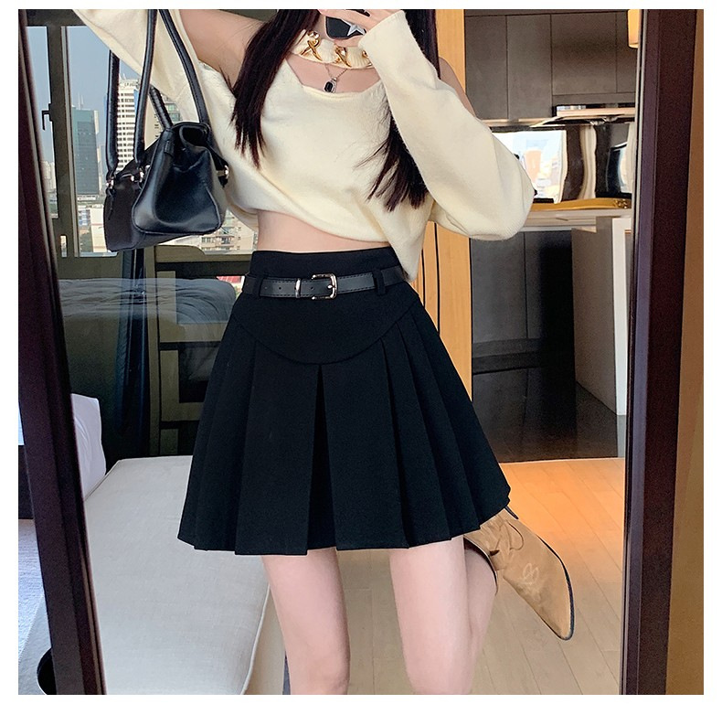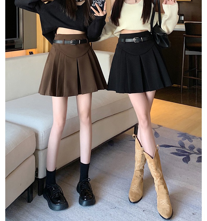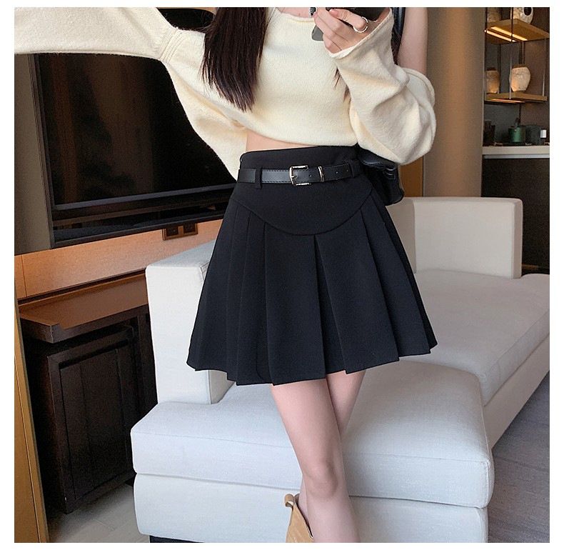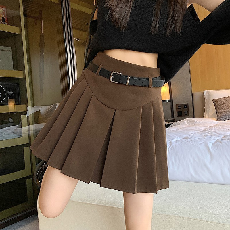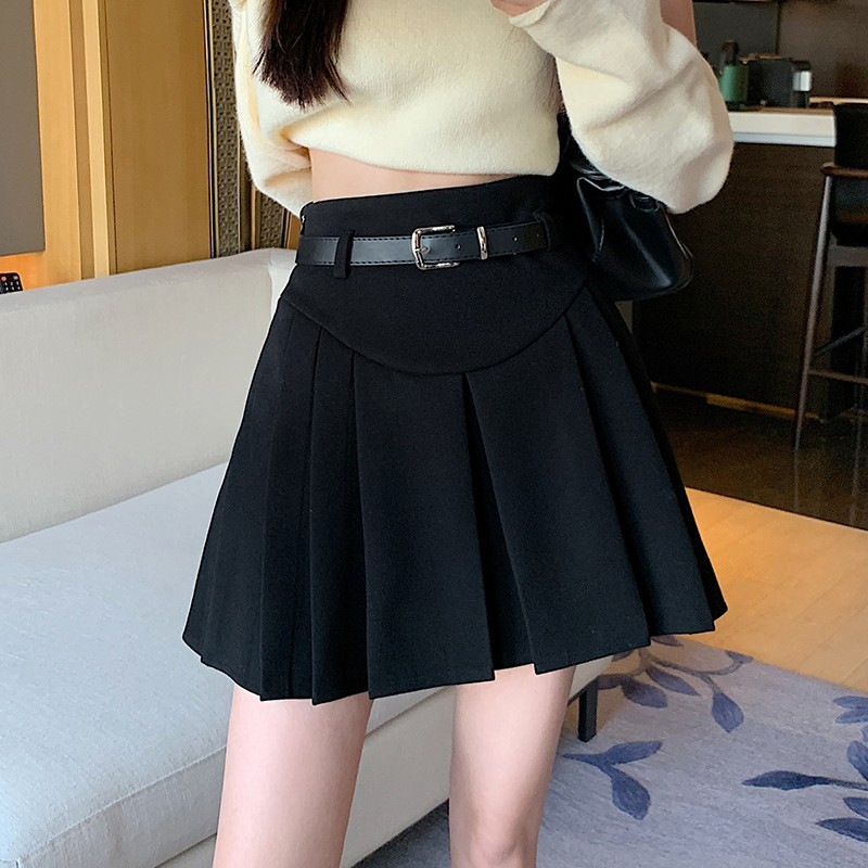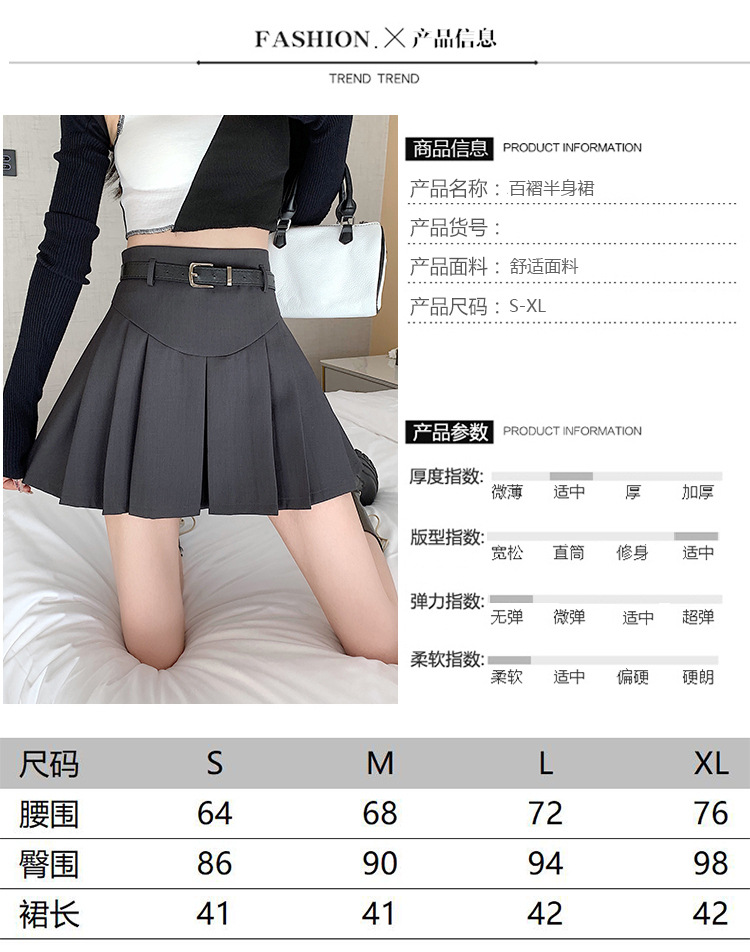 높은 허리 세트 치마 여성의 봄과 가을 디자인 센스 그레이 주름 치마 작은 모든 경기 연령 감소 A 라인 짧은 치마스토어 가기