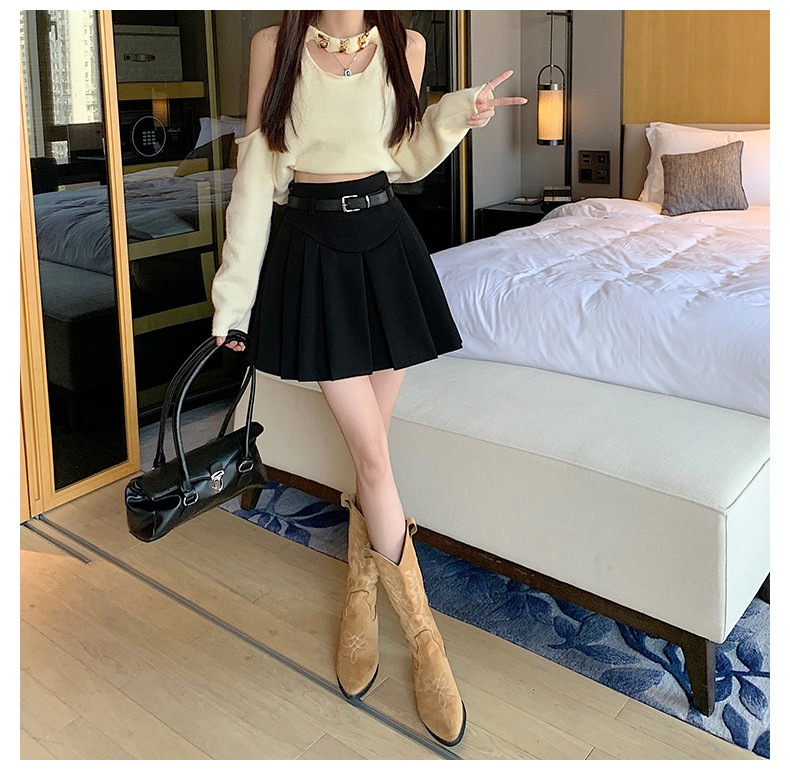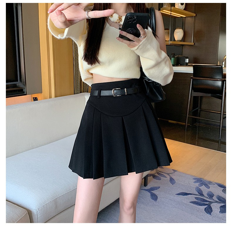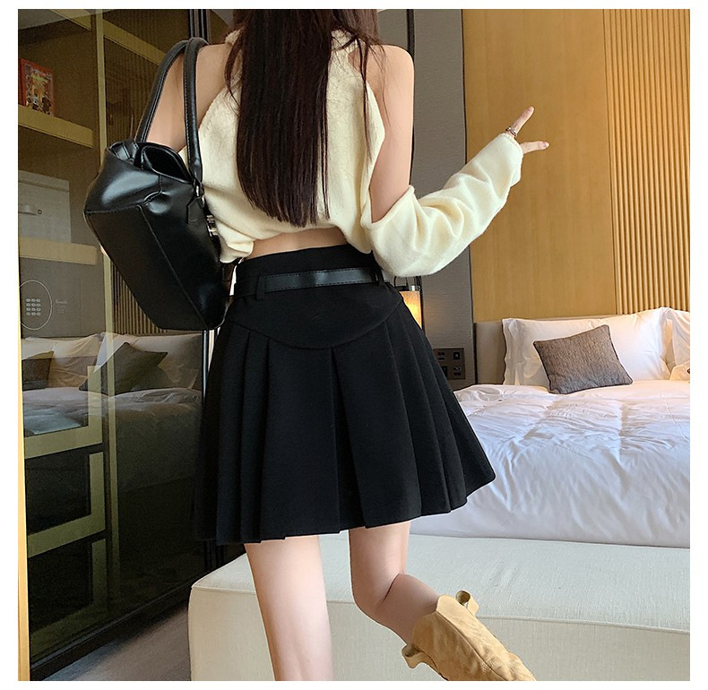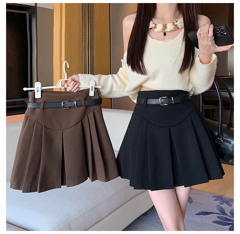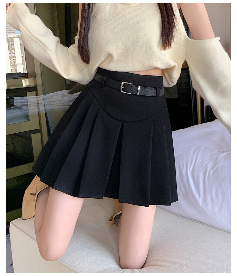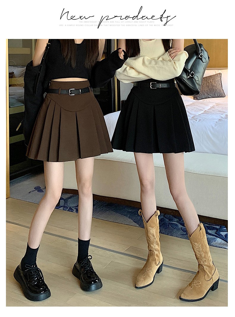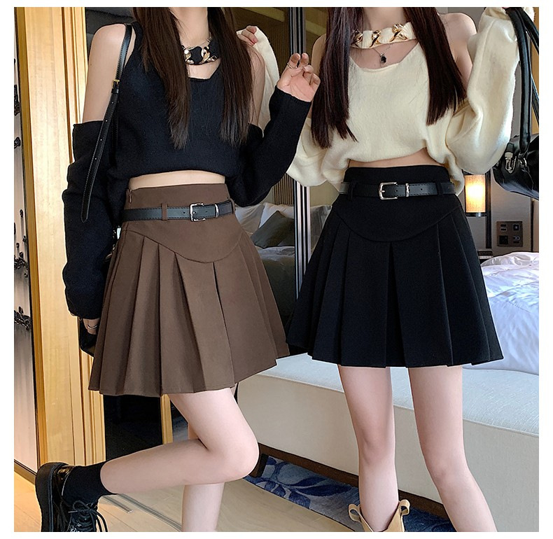 높은 허리 세트 치마 여성의 봄과 가을 디자인 센스 그레이 주름 치마 작은 모든 경기 연령 감소 A 라인 짧은 치마스토어 가기