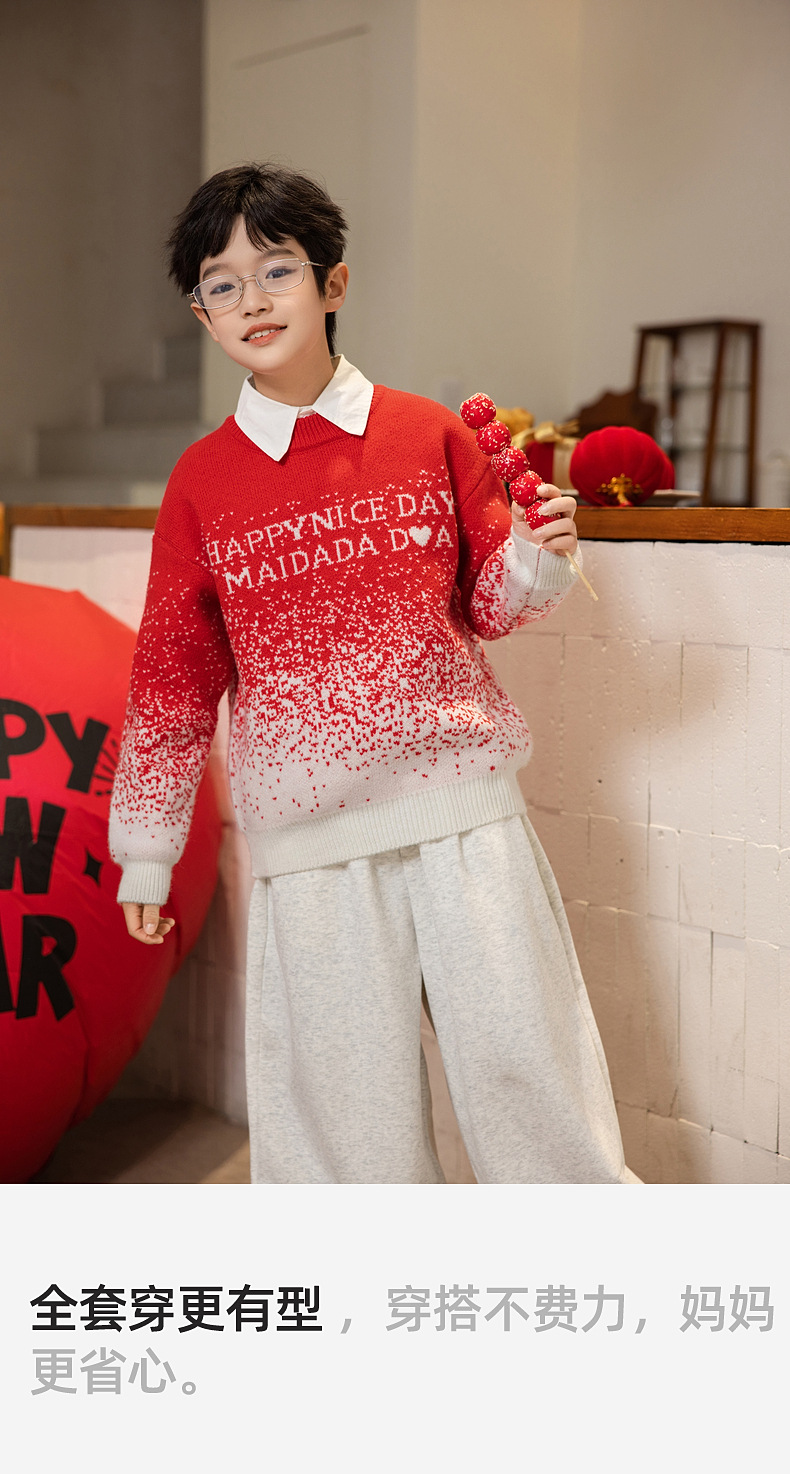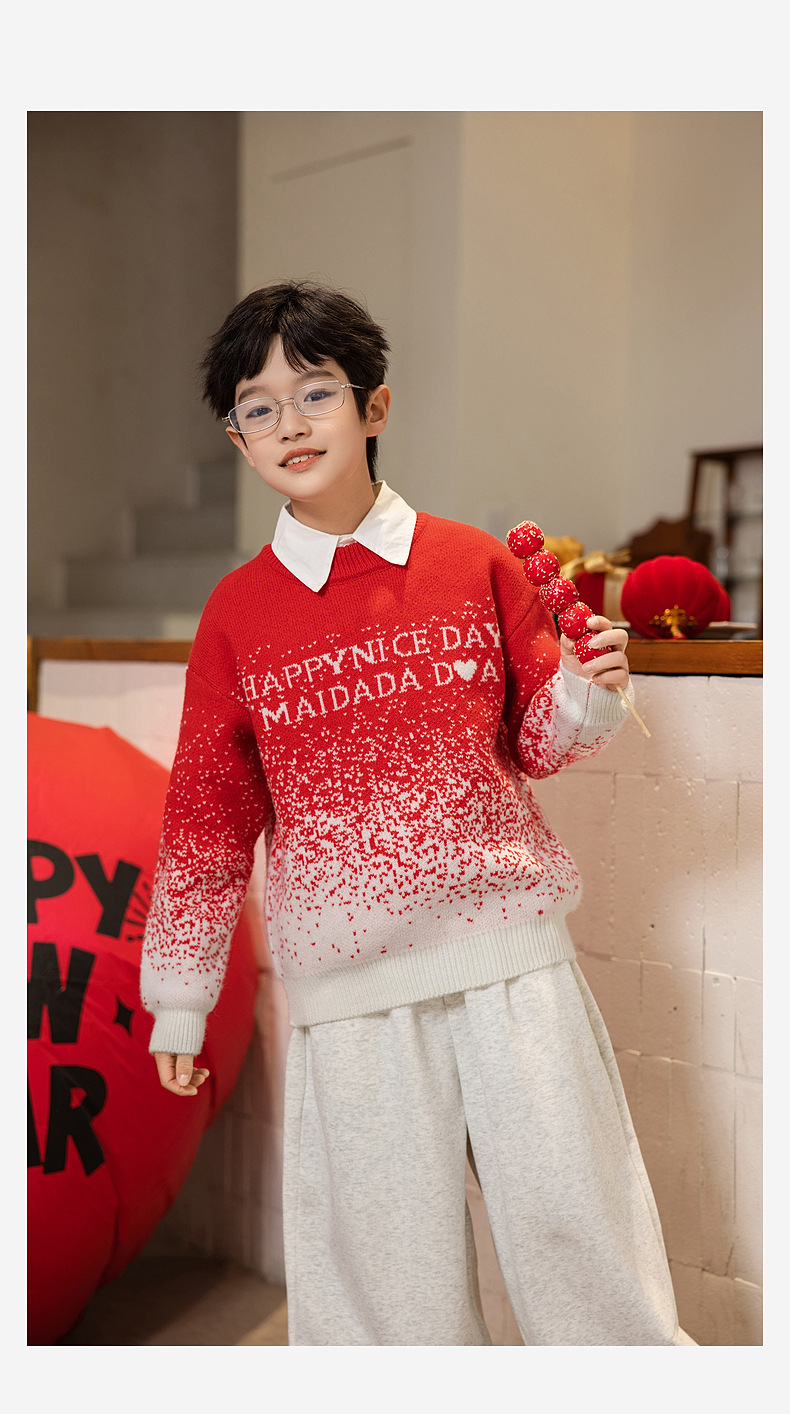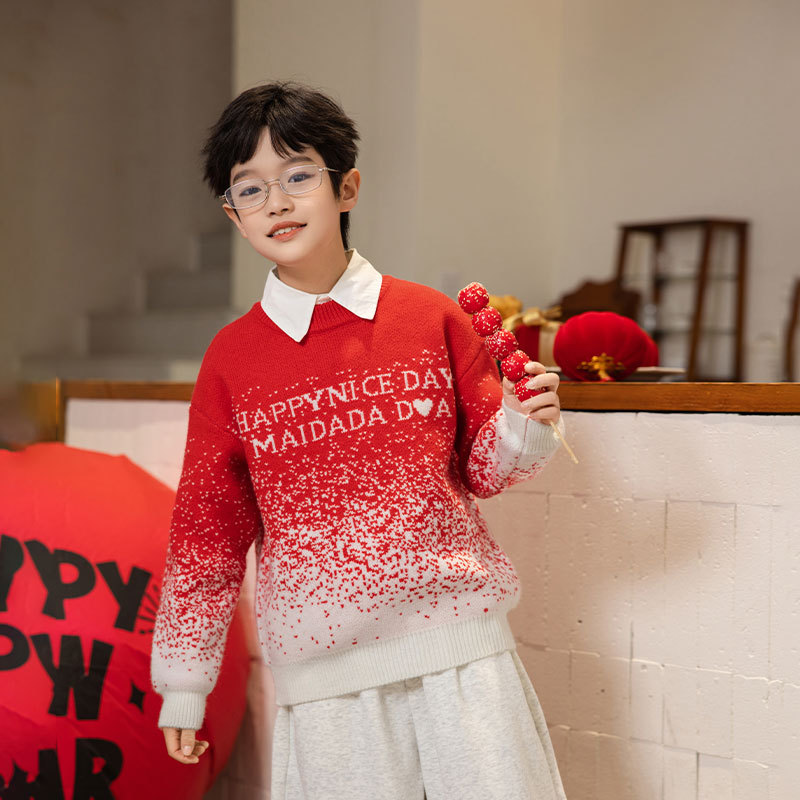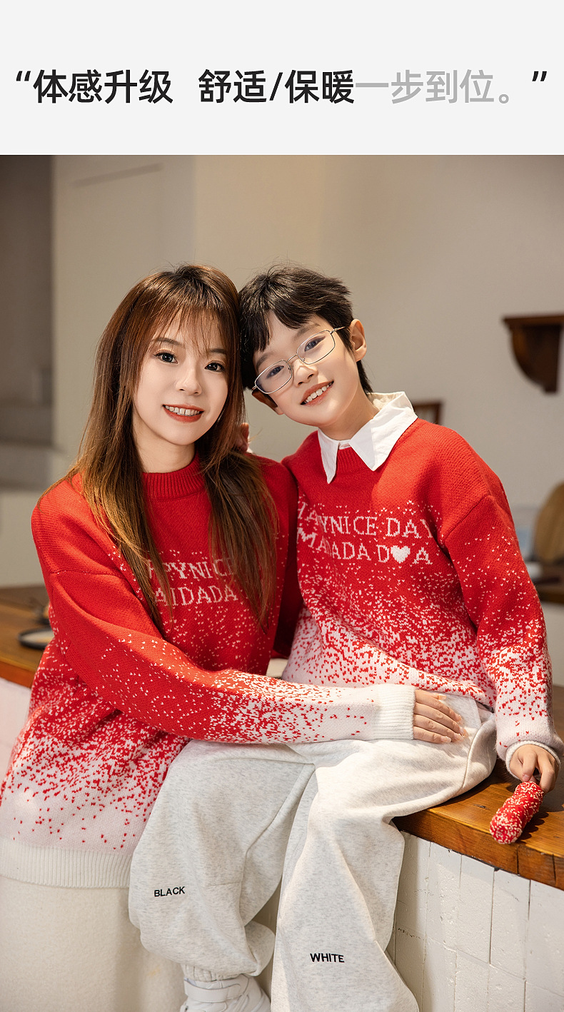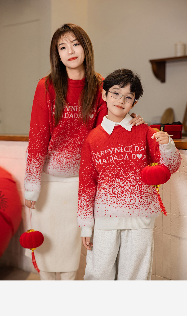 팬더 라운드 레드 그라디언트 부모-자식 새해 복 어린이 스웨터 두꺼운 소년 소녀 스웨터 스웨터 도매스토어 가기