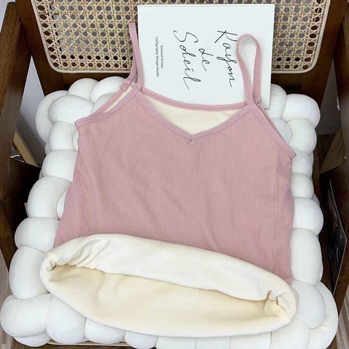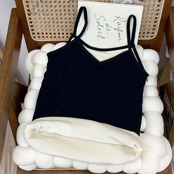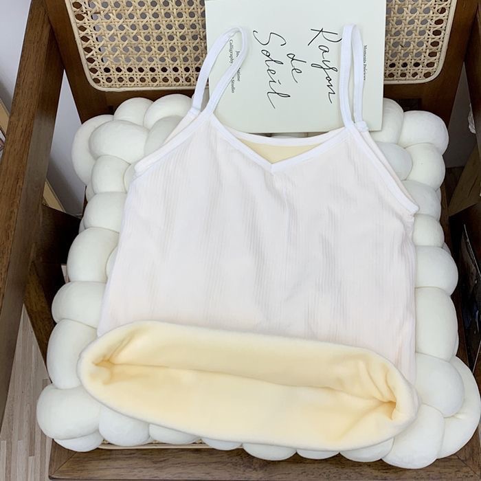 가을과 겨울 기모 두꺼운 따뜻한 조끼 솔리드 컬러 콜드 방수 V 넥 슬링베이스 슬림 핏 민소매 탑 여성