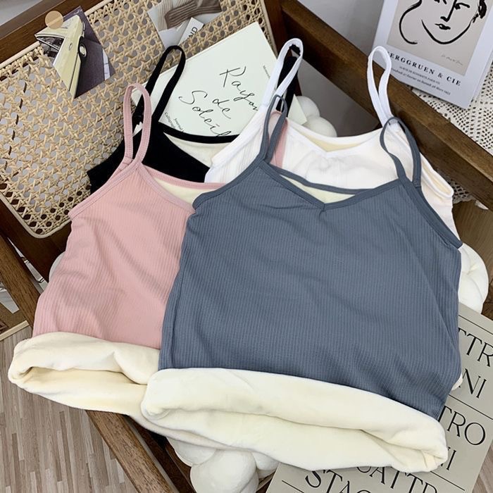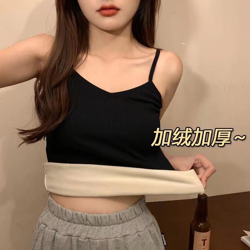 가을과 겨울 기모 두꺼운 따뜻한 조끼 솔리드 컬러 콜드 방수 V 넥 슬링베이스 슬림 핏 민소매 탑 여성스토어 가기