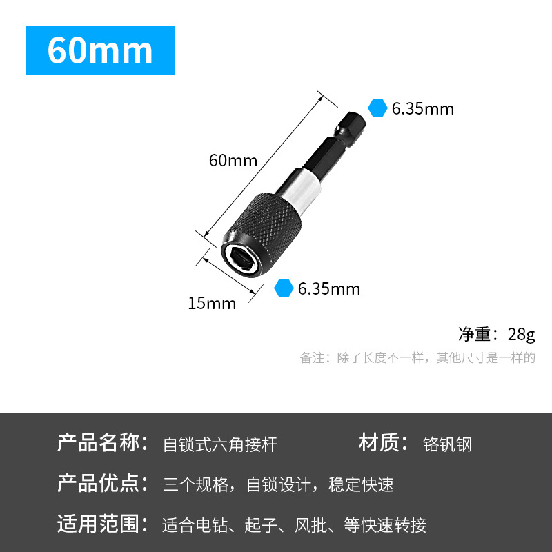배치 헤드 연장로드 전기 드릴 조인트 연장 6.35mm 강한 자기 육각형 1/4 슬리브 자체 잠금 연결로드스토어 가기