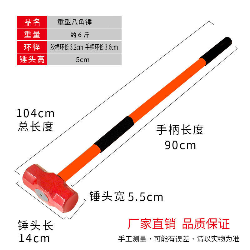 • (약 4kg ) 손잡이가 있는 팔각형 망치 14파운드, 빨간색 모델