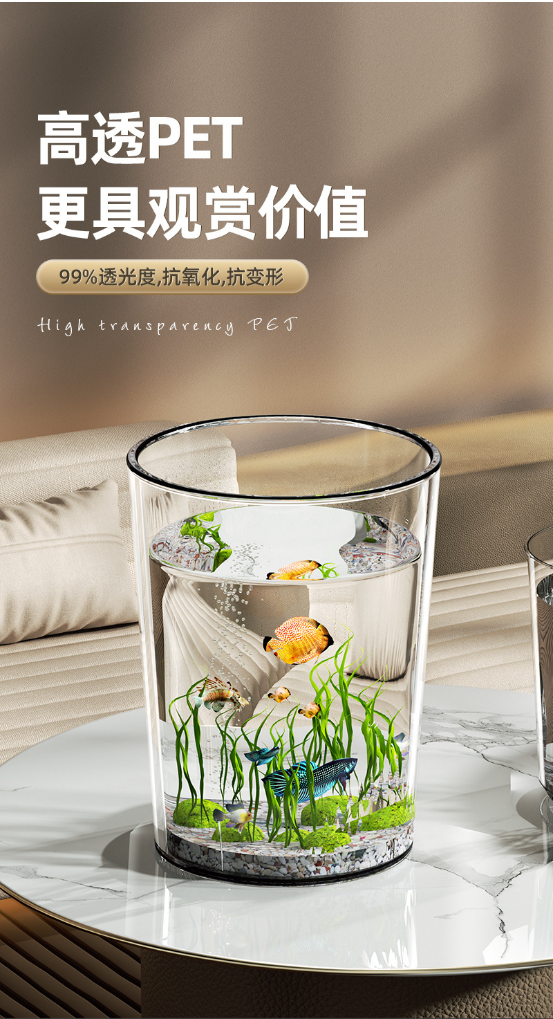간단한 물고기 탱크 높은 투명 드롭 방지 둥근 물고기-양동이 유리와 같은 경량 작은 물 잔디 거북이 실용적인 양동이 물고기 키우기스토어 가기