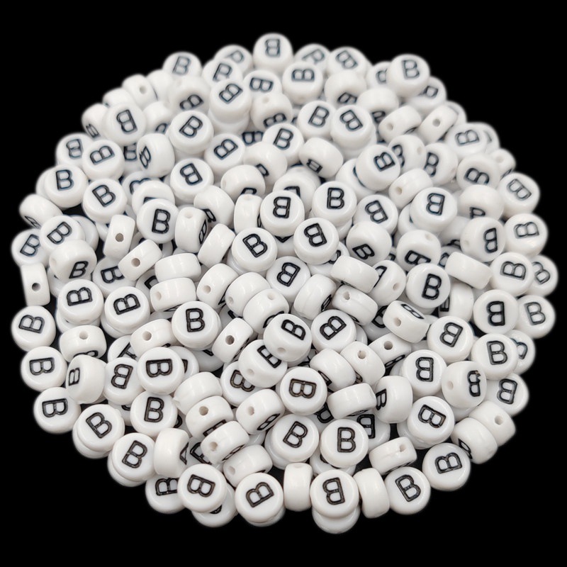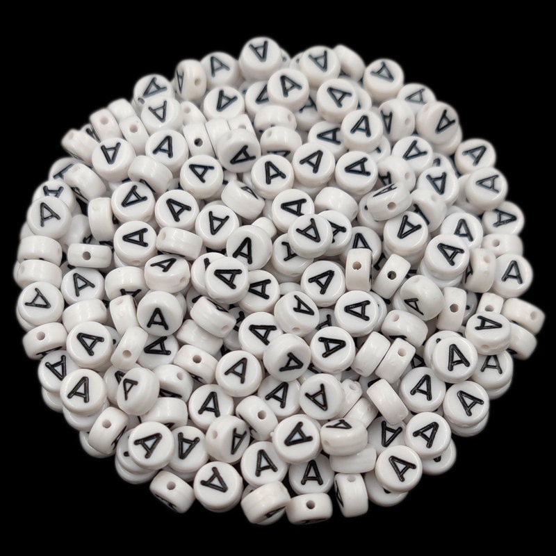 아크릴 편지 흰색 검은 색 편지 구슬 플랫 라운드 구슬 DIY 보석 팔찌 만들기 액세서리 구슬스토어 가기