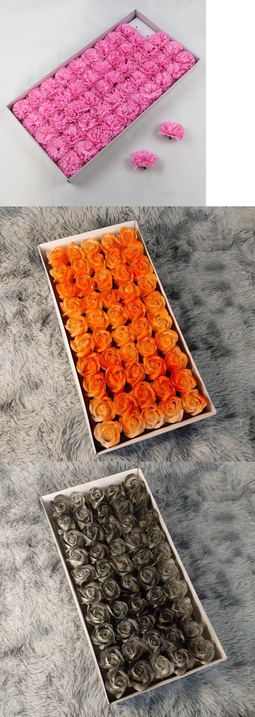 로즈 카네이션 해바라기 비누 꽃 비누 꽃 머리 꽃다발 꽃 선물 포장 재료