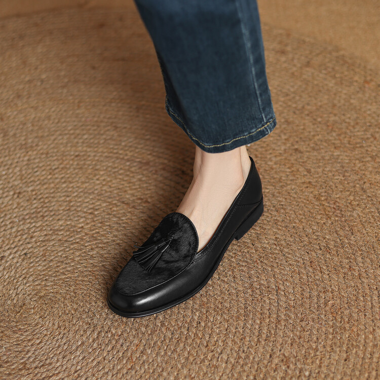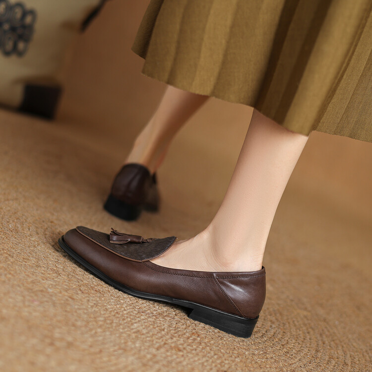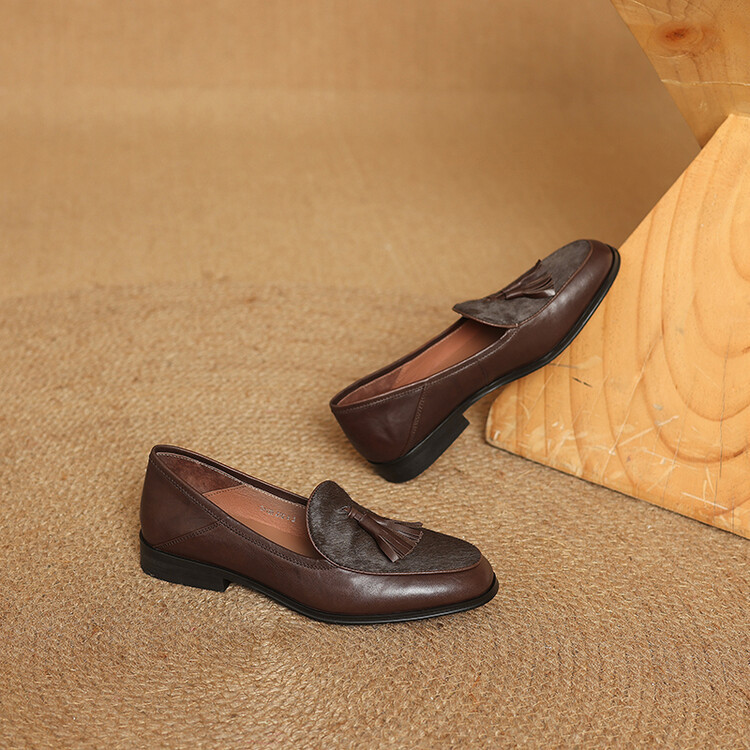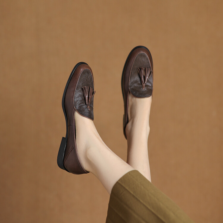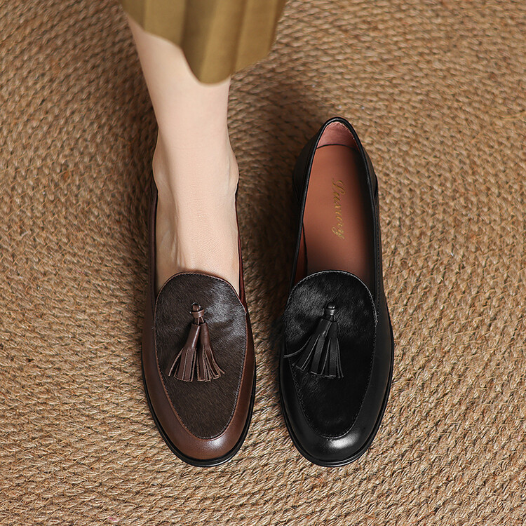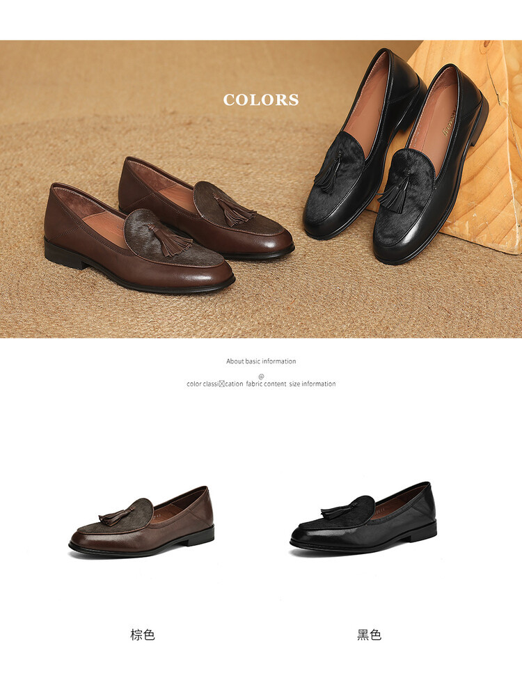 2.5cm 영국식 말 머리 술 로퍼 여성 2025 봄 새로운 탑 레이어 소 가죽 여성 신발 콩 신발스토어 가기