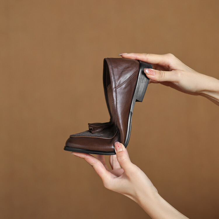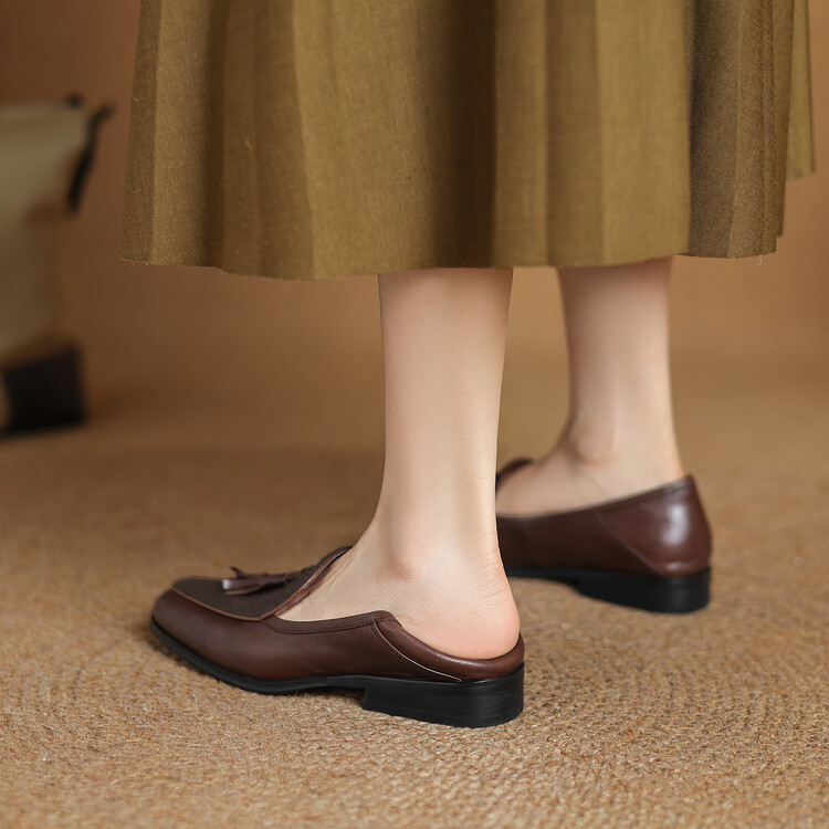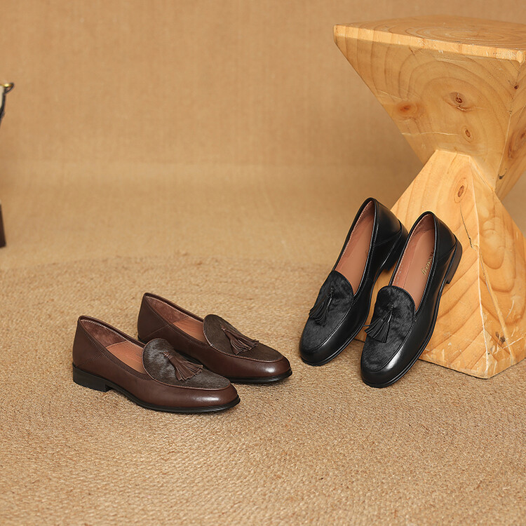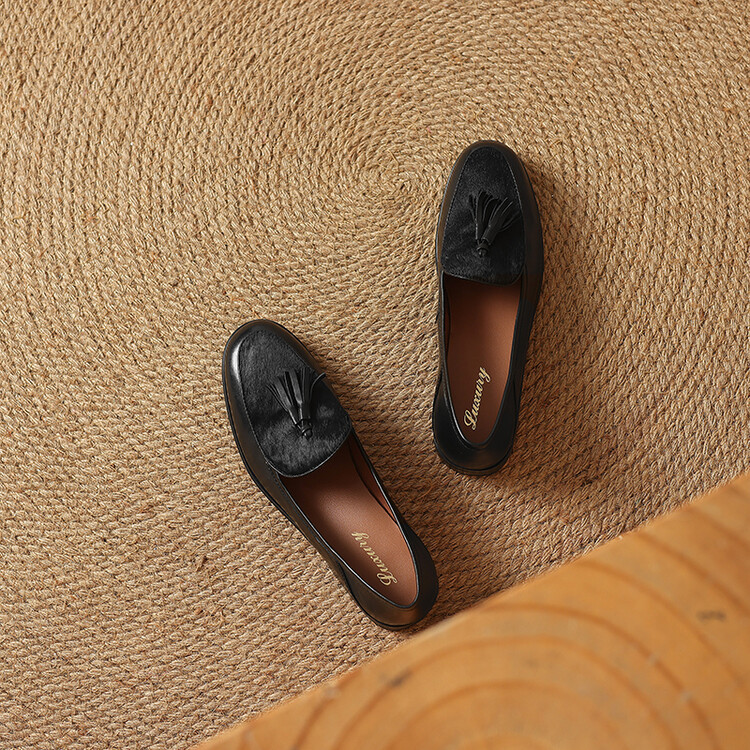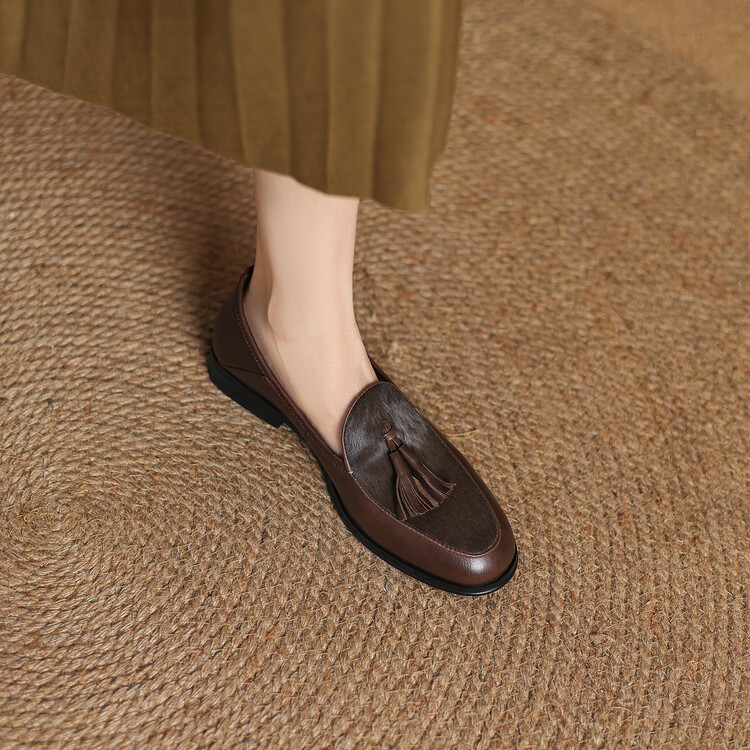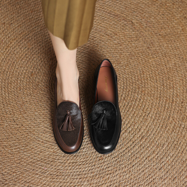 2.5cm 영국식 말 머리 술 로퍼 여성 2025 봄 새로운 탑 레이어 소 가죽 여성 신발 콩 신발스토어 가기