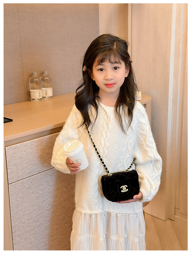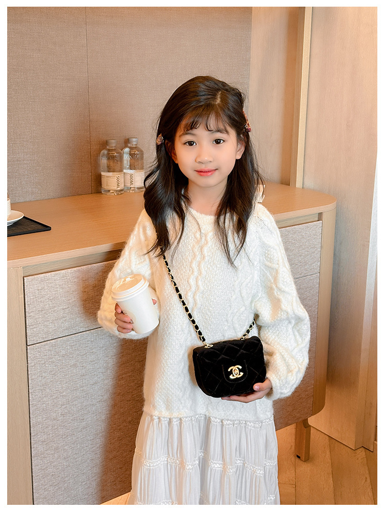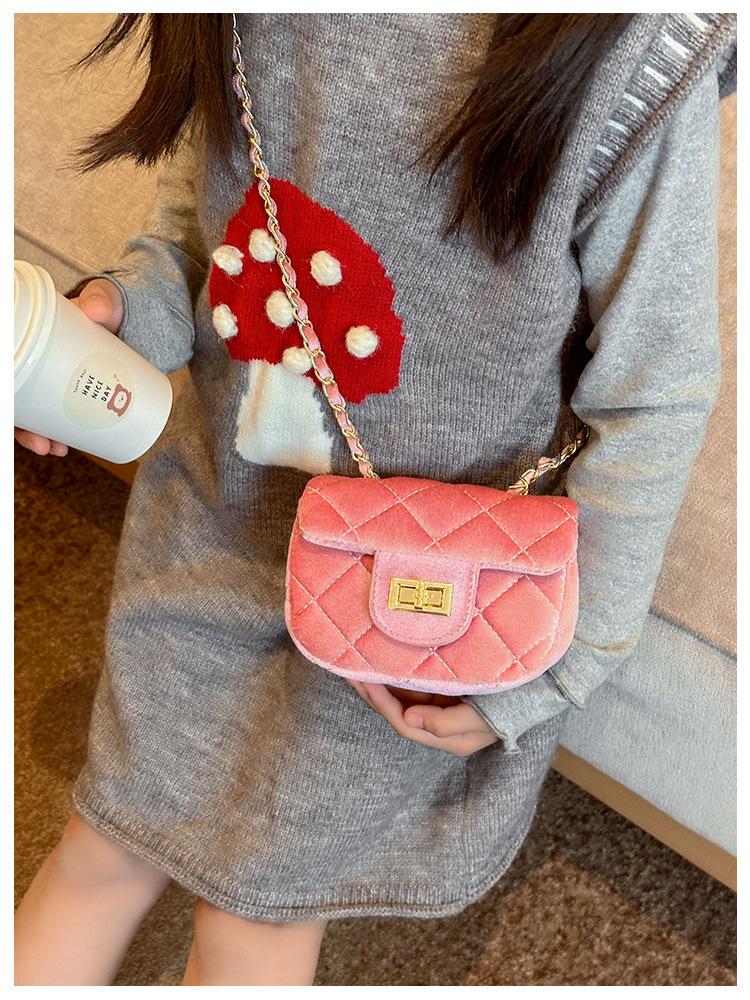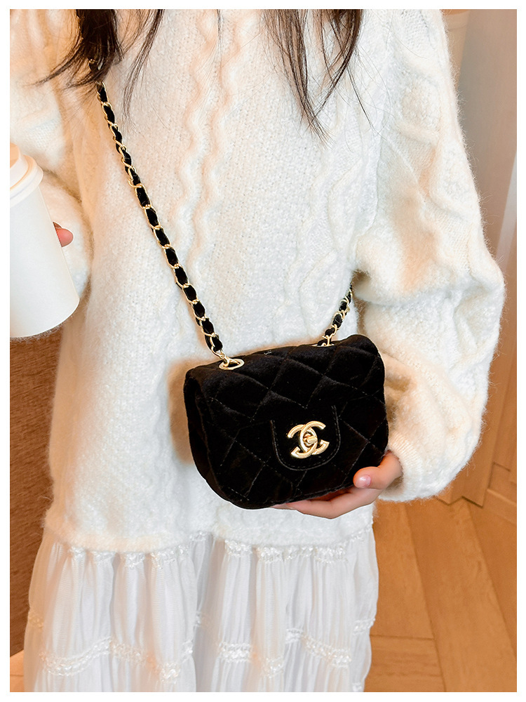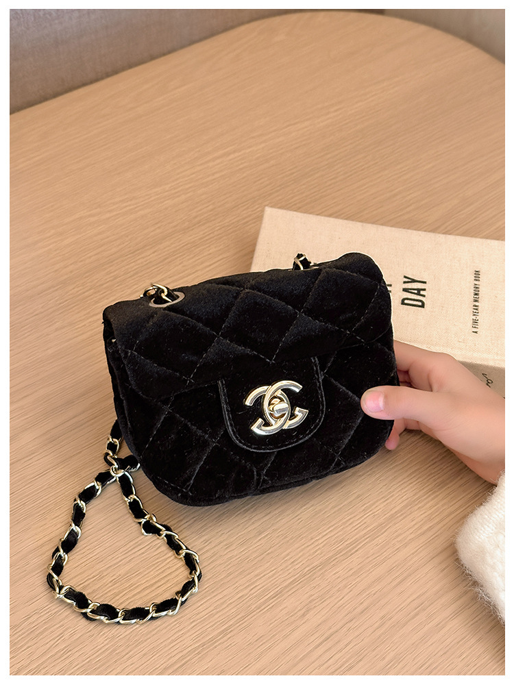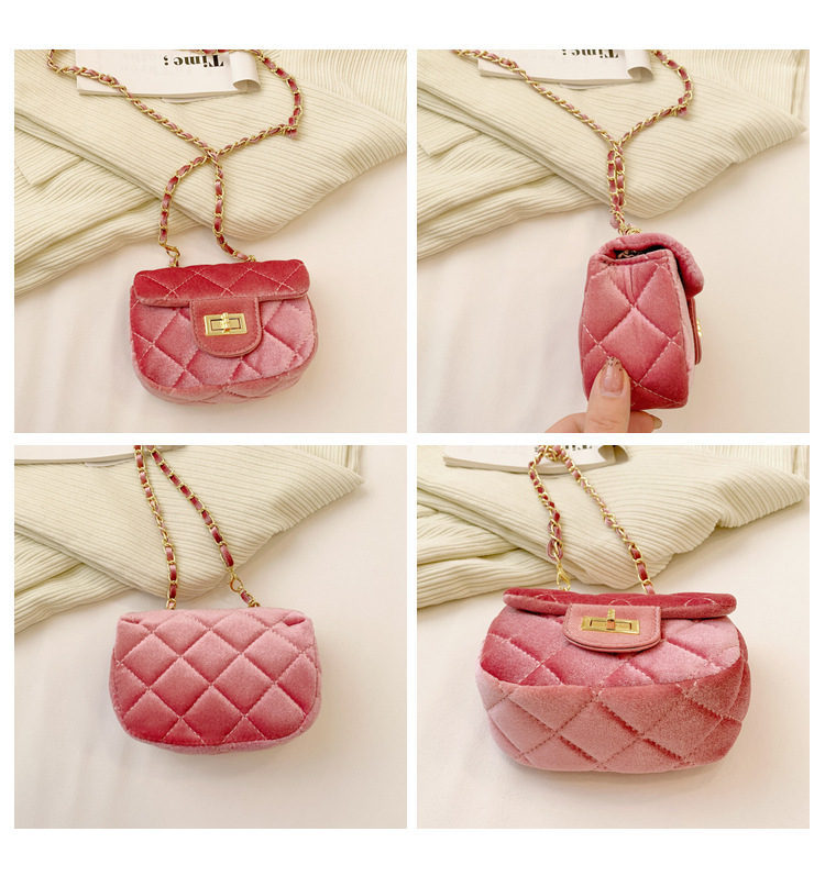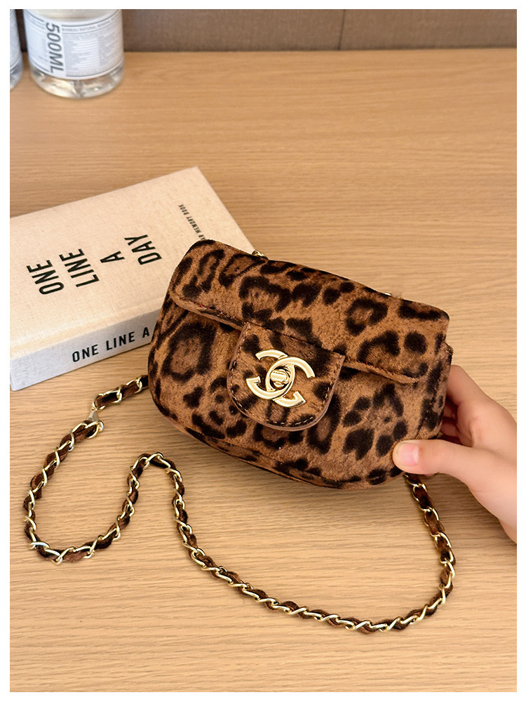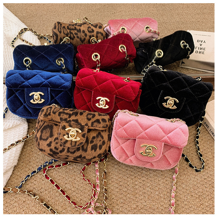 가방 소녀의 샤넬 스타일 체인 크로스 바디 백 모든 경기 유행 다이아몬드 패턴 레오파드 무늬 벨벳 어린이 아기의 작은 변경 가방스토어 가기