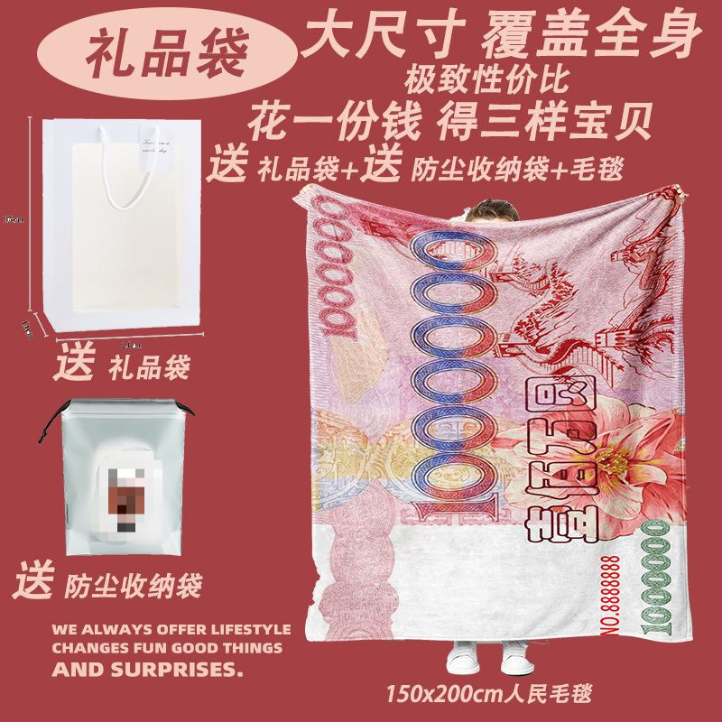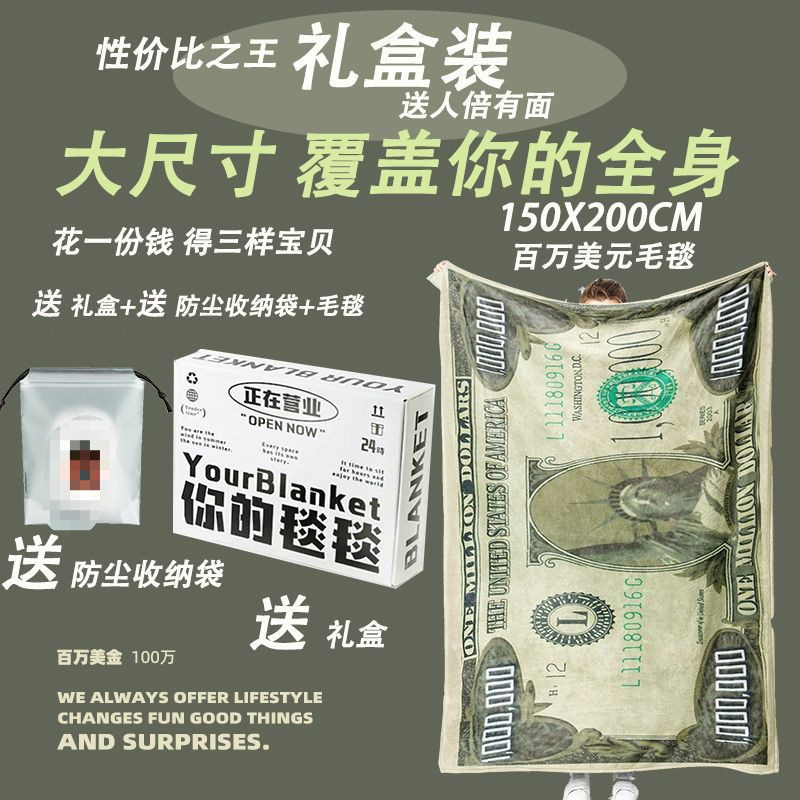 웃긴 담요 백만 달러 금 재미있는 선물 에어컨 룸 캠퍼스 기숙사 사무실 점심 시간 플란넬 Jue Qin스토어 가기