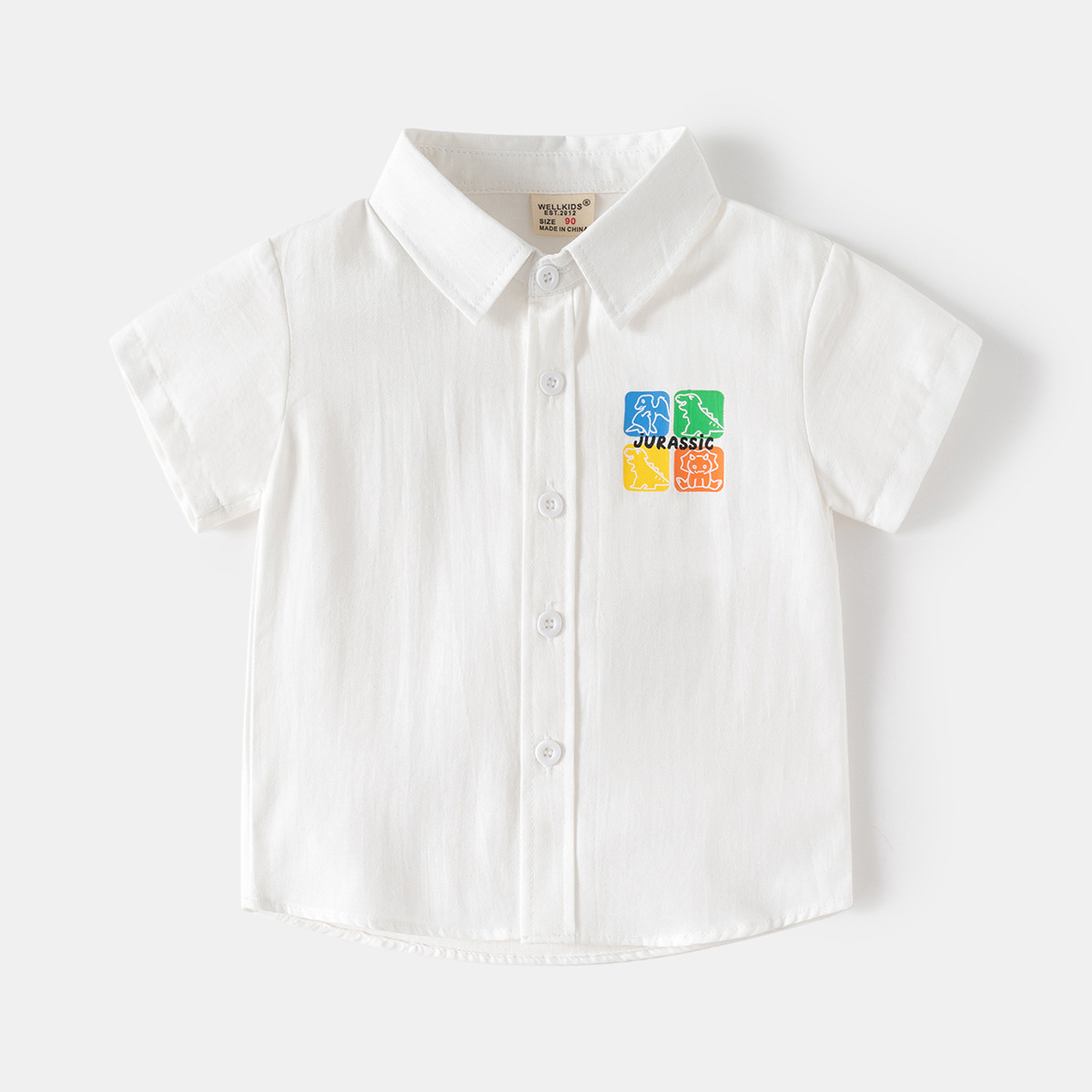 어린이 짧은 소매 셔츠 소년 여름 새 소년 서양식 얇은 셔츠 아기 한국 스타일 최고 유행 도매스토어 가기