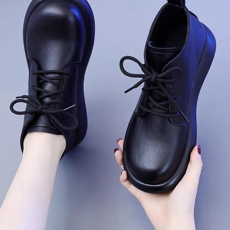 소프트 단독 편안한 조커 작은 가죽 신발 낮은 뒤꿈치 기모 어머니 신발 여성의 2024 가을 및 겨울 새로운 패션 짧은 배럴 마틴 부츠스토어 가기
