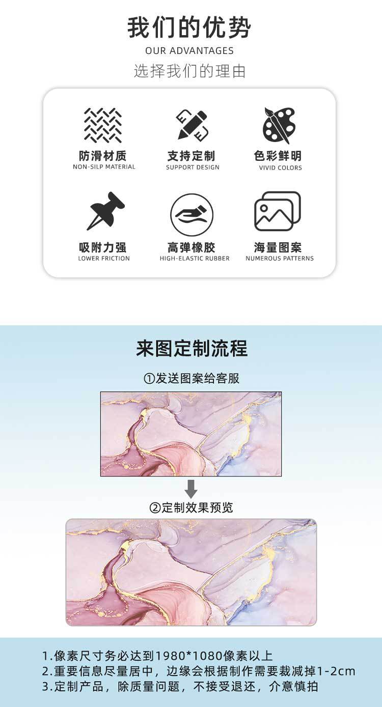 국경 간 아마존 추상 핑크 골드 대리석 마우스 패드 대형 먼지 방지 미끄럼 방지 컴퓨터 사무실 매트