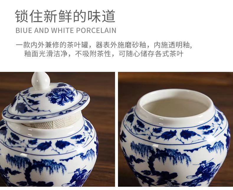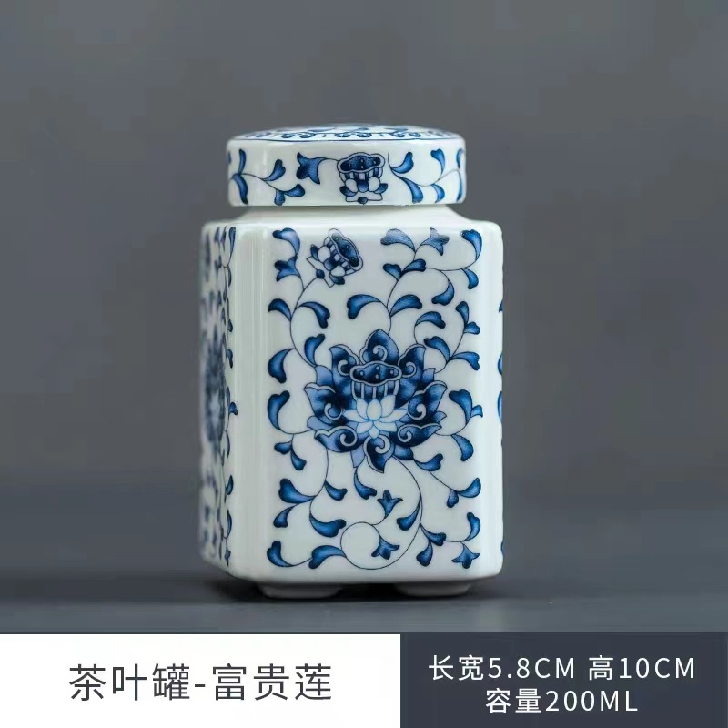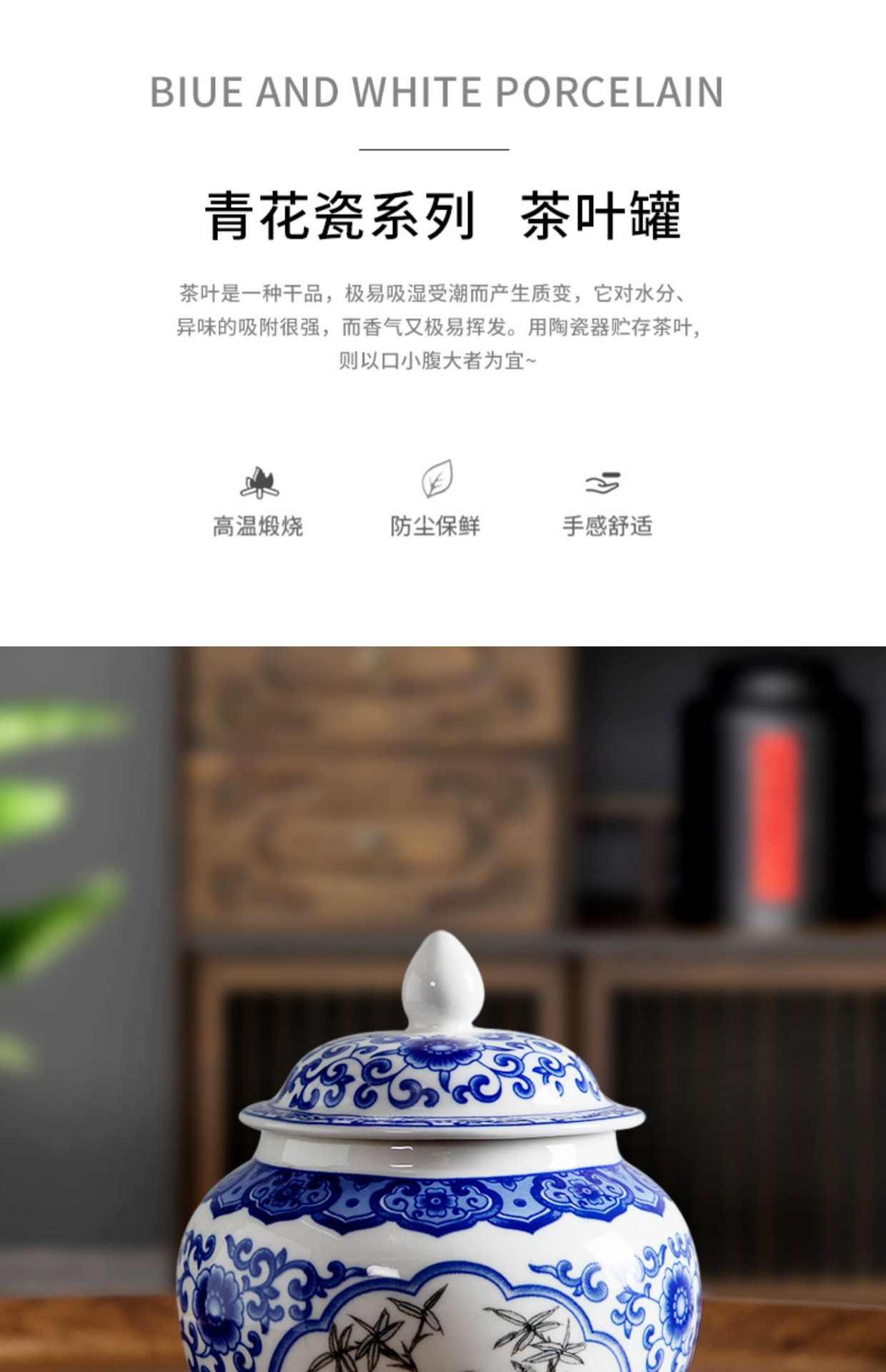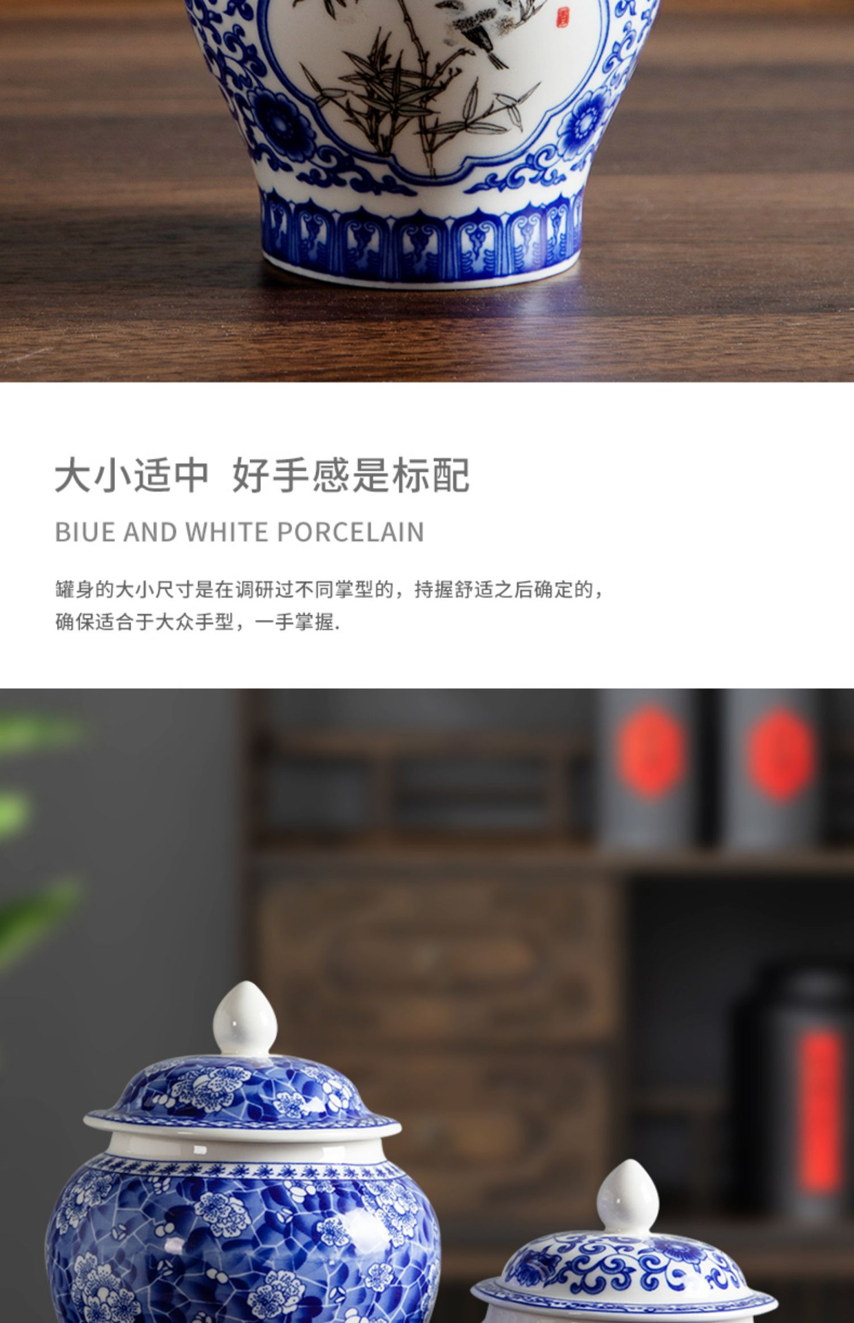파란색과 흰색 도자기 차 캔 일반 항아리 중국 세라믹 밀봉 습기 방지 저장 항아리 가정용 선물 차 캔