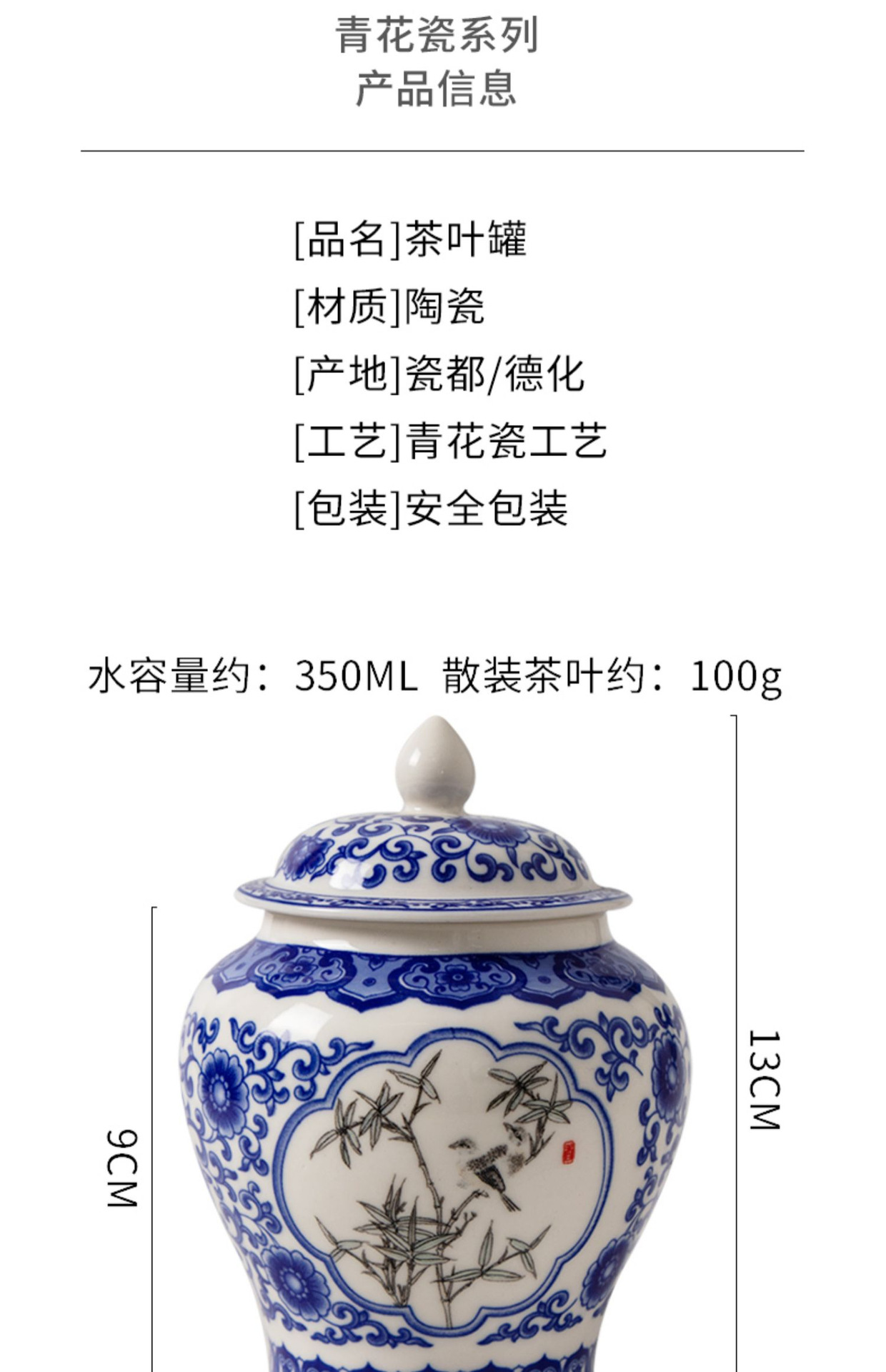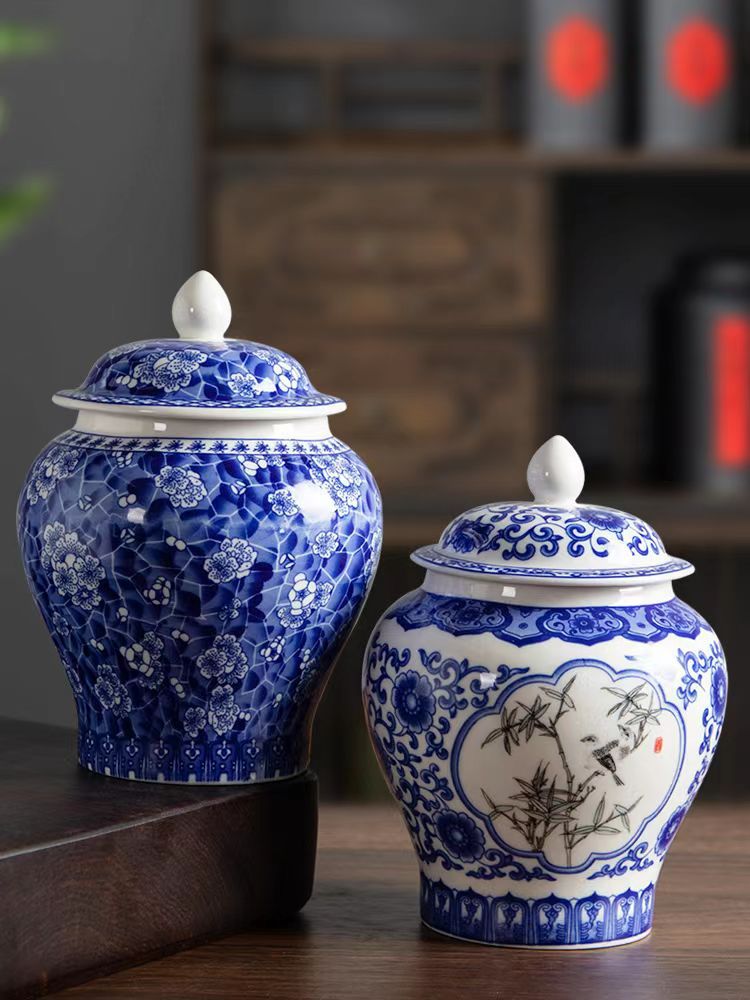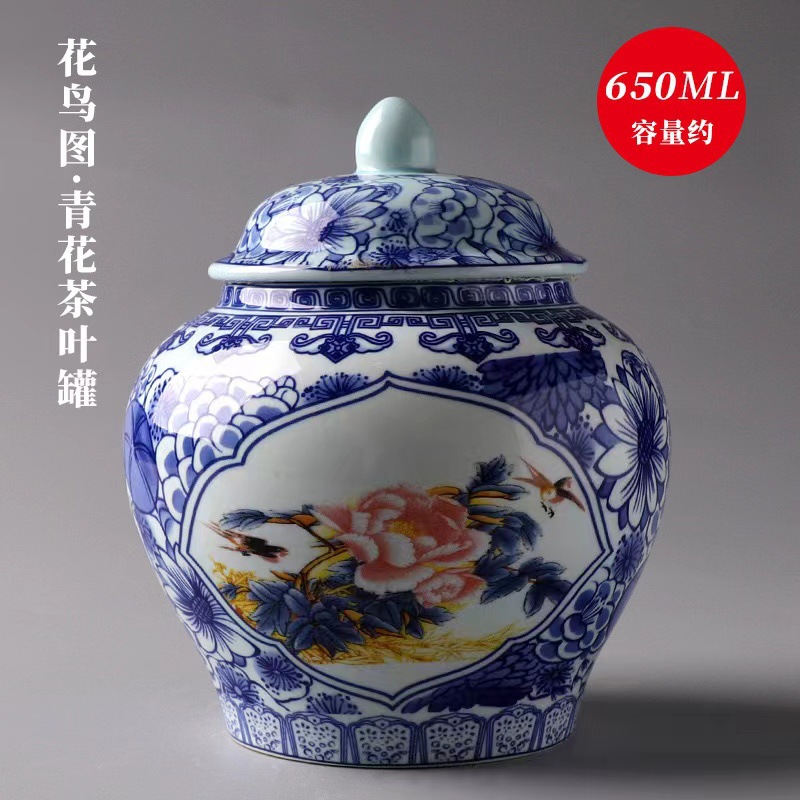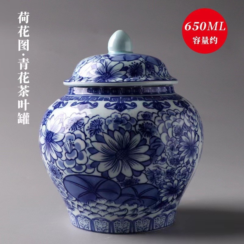 파란색과 흰색 도자기 차 캔 일반 항아리 중국 세라믹 밀봉 습기 방지 저장 항아리 가정용 선물 차 캔