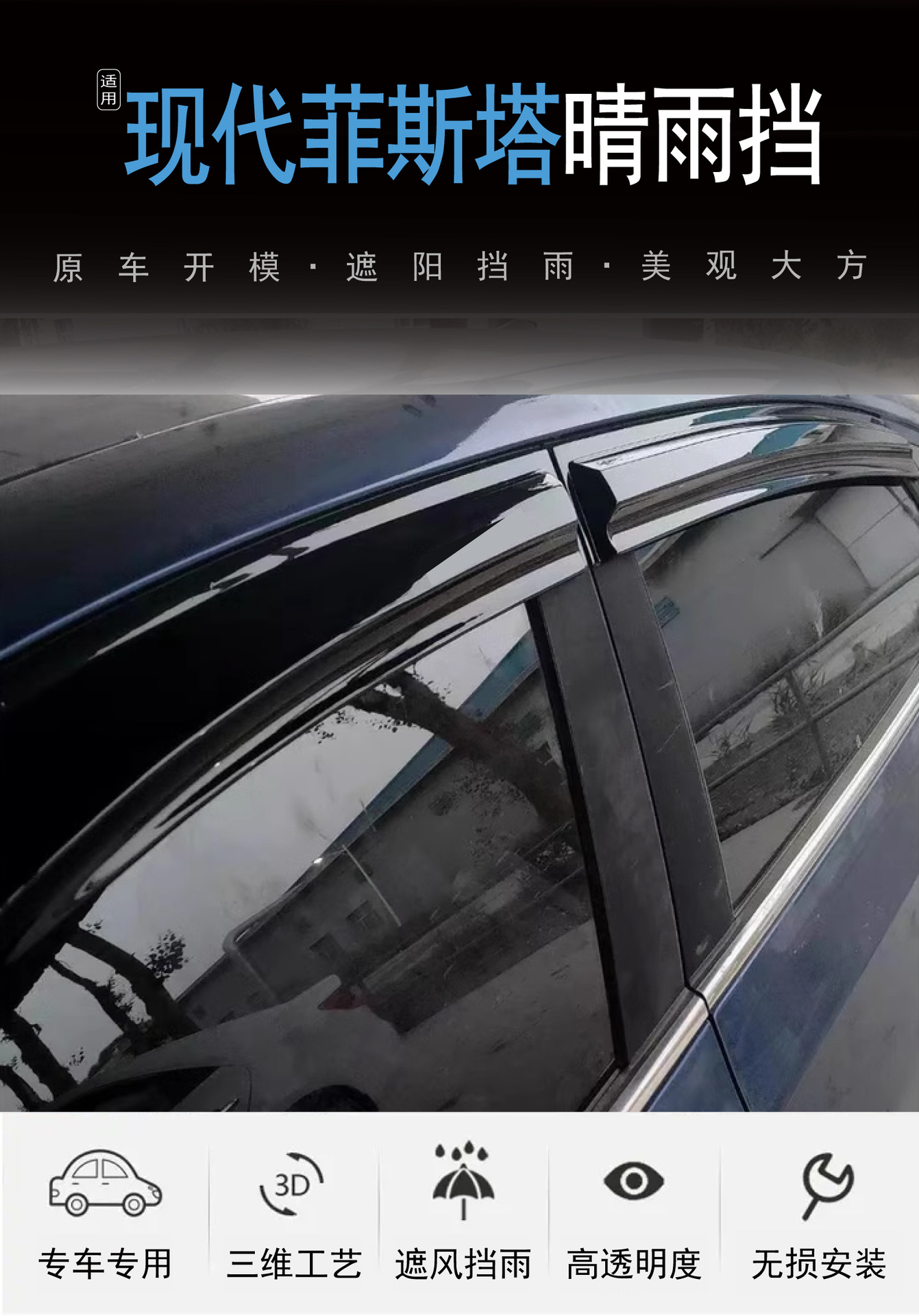 2019 현대 Fista Lafesta 창 비 방지 아크릴 자동차 비 방패의 국경 간 적용
