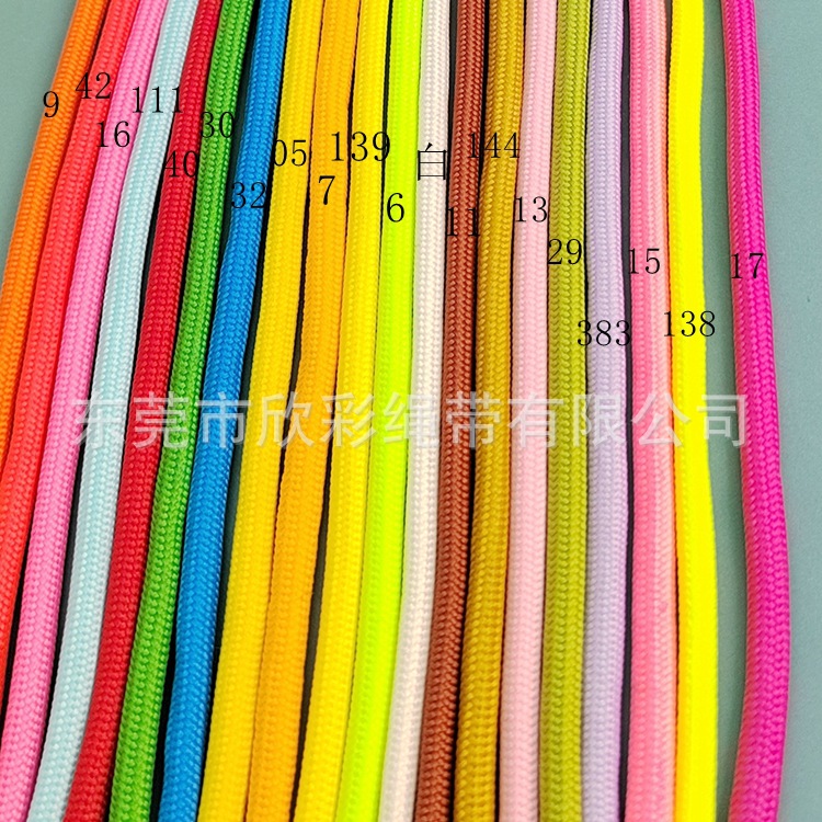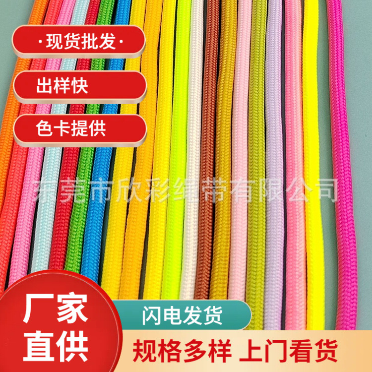 공장 직접 공급 밝은 색상 5mm 폴리 에스테르 로프 코어 휴대 전화 끈 신발 끈 수하물 바지 로프 색상 재고