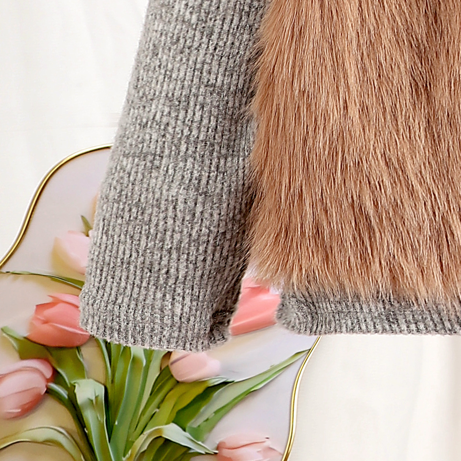 어린이 의류 소녀 세트 다크 브라운 활 마오 마오 조끼 솔리드 컬러베이스 푸 주름