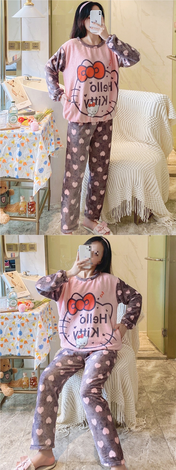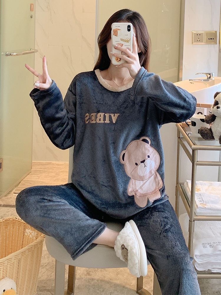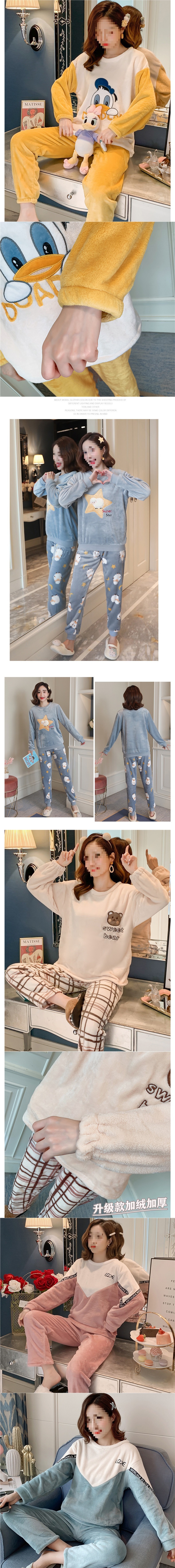파자마 여성 플란넬 기모 두꺼운 투피스 따뜻한 달콤한 귀여운 산호 양털 겨울 2024 새 집 옷스토어 가기