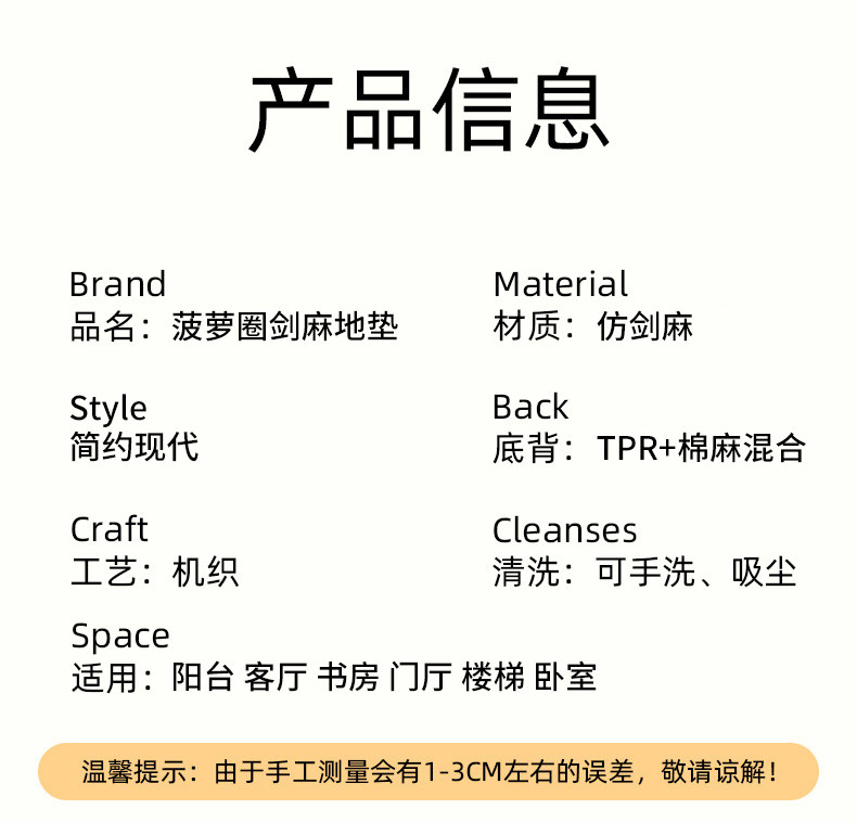 • 오프화이트 - 모조 사이잘 - 업그레이드된 강력한 미끄럼 방지 TPR + 면 바닥(88%의 고객 선택)