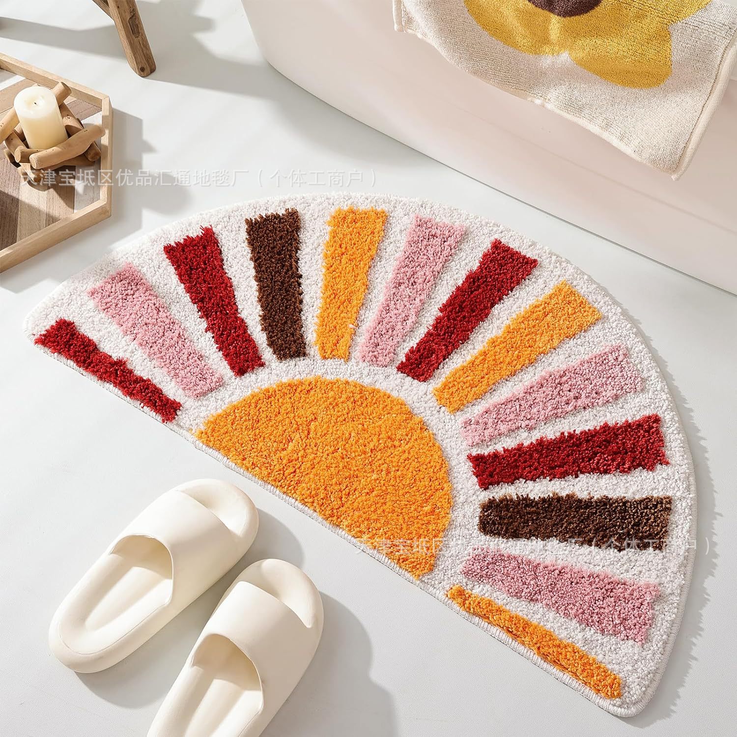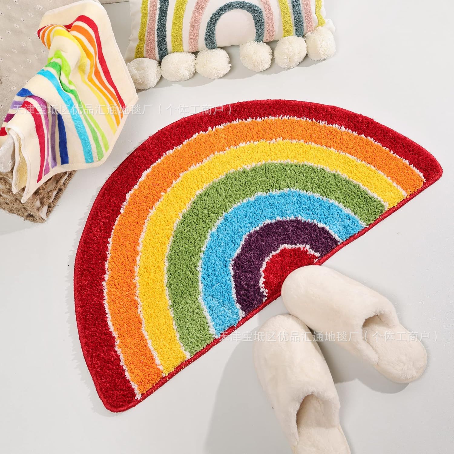 TEMU Daifa 무지개 반원 모조 캐시미어 바닥 매트 가정용 욕실 흡수성 도어 매트 입구 미끄럼 방지 발 매트 재고