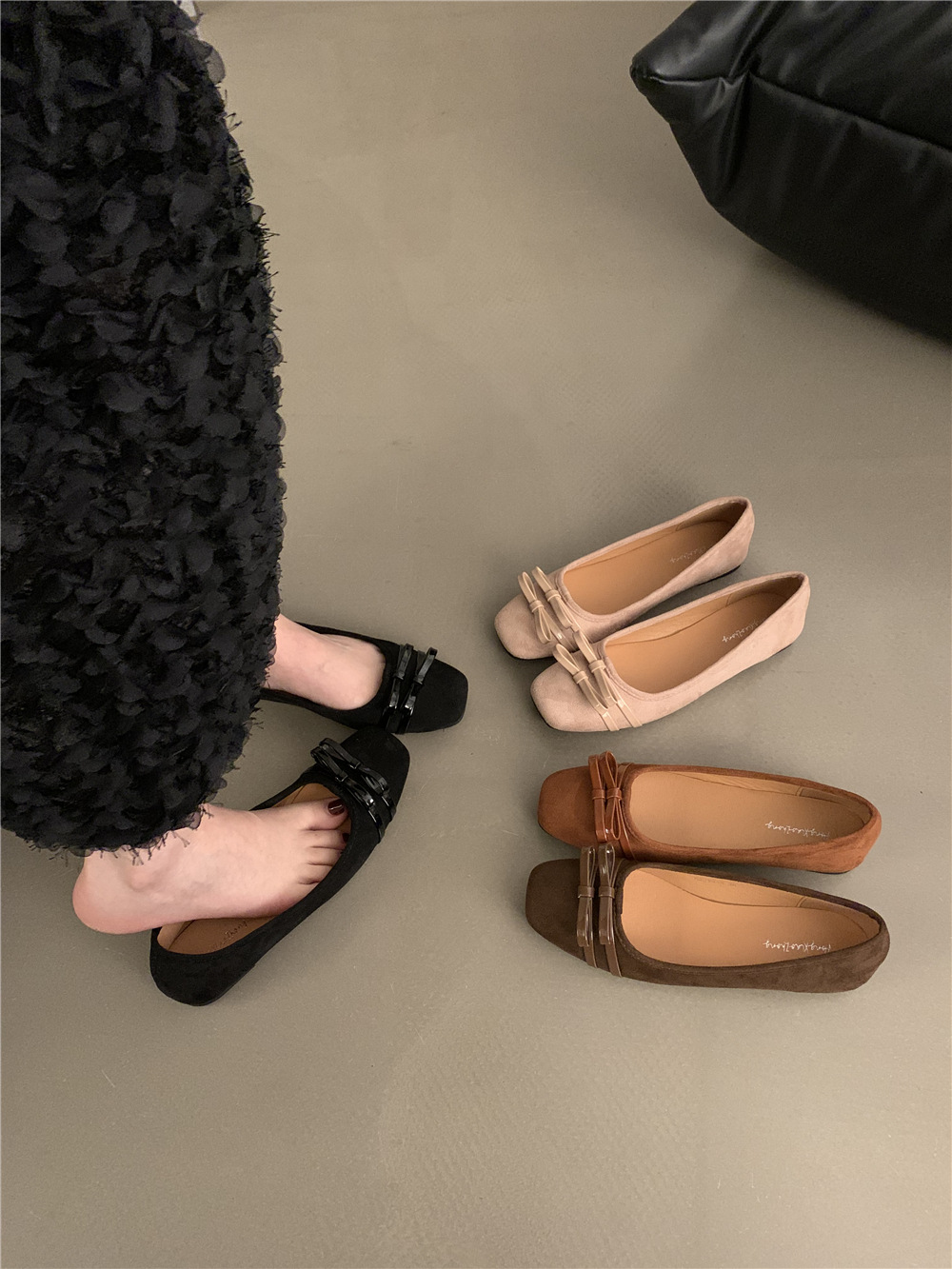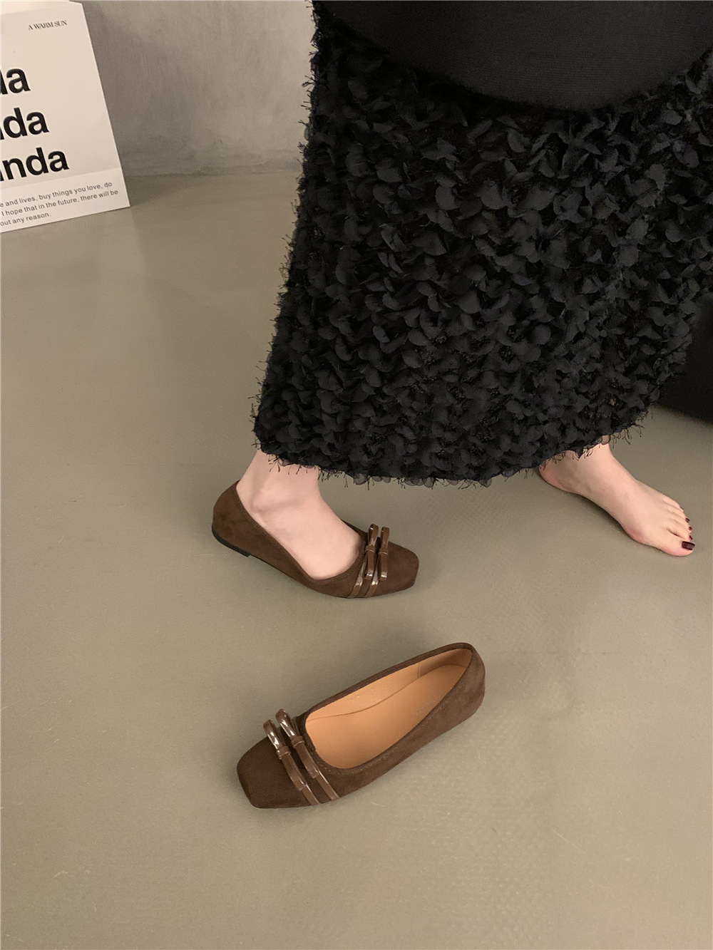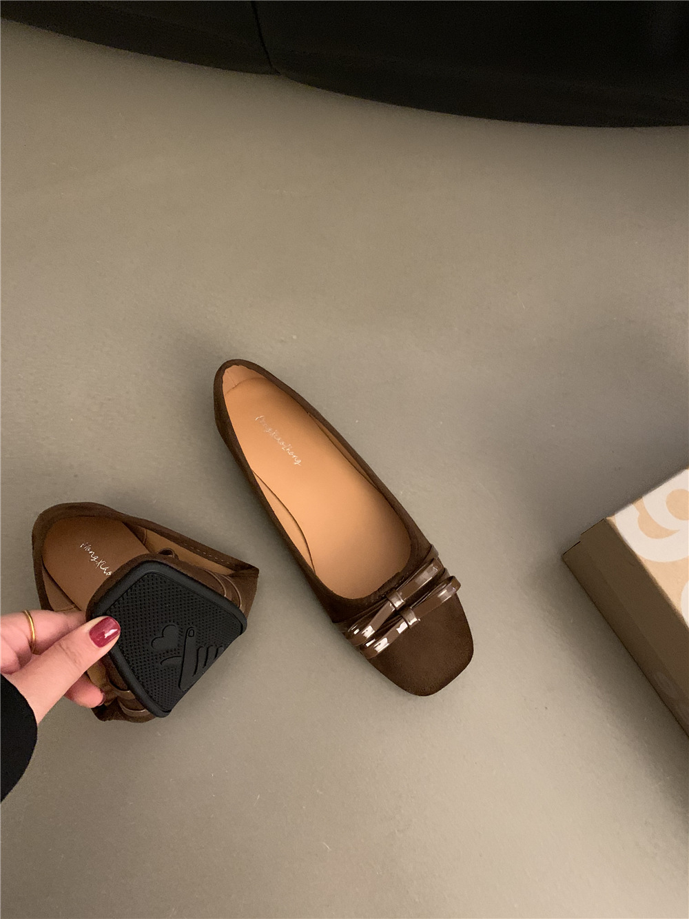 빈티지 늦은 저녁 신발 플랫 부드러운 싱글 레이어 신발 여성 신발 2024 가을과 겨울 슬립-부드러운 가당 신발 얕은 입 통근 신발