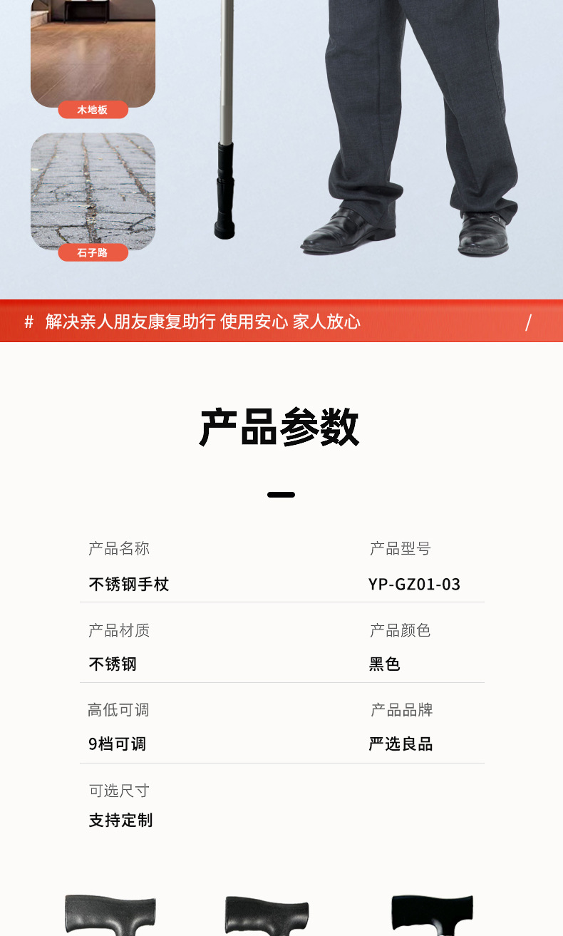 • 스테인레스 스틸 단일 다리 지팡이