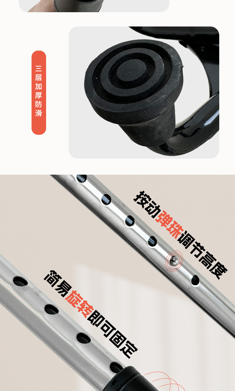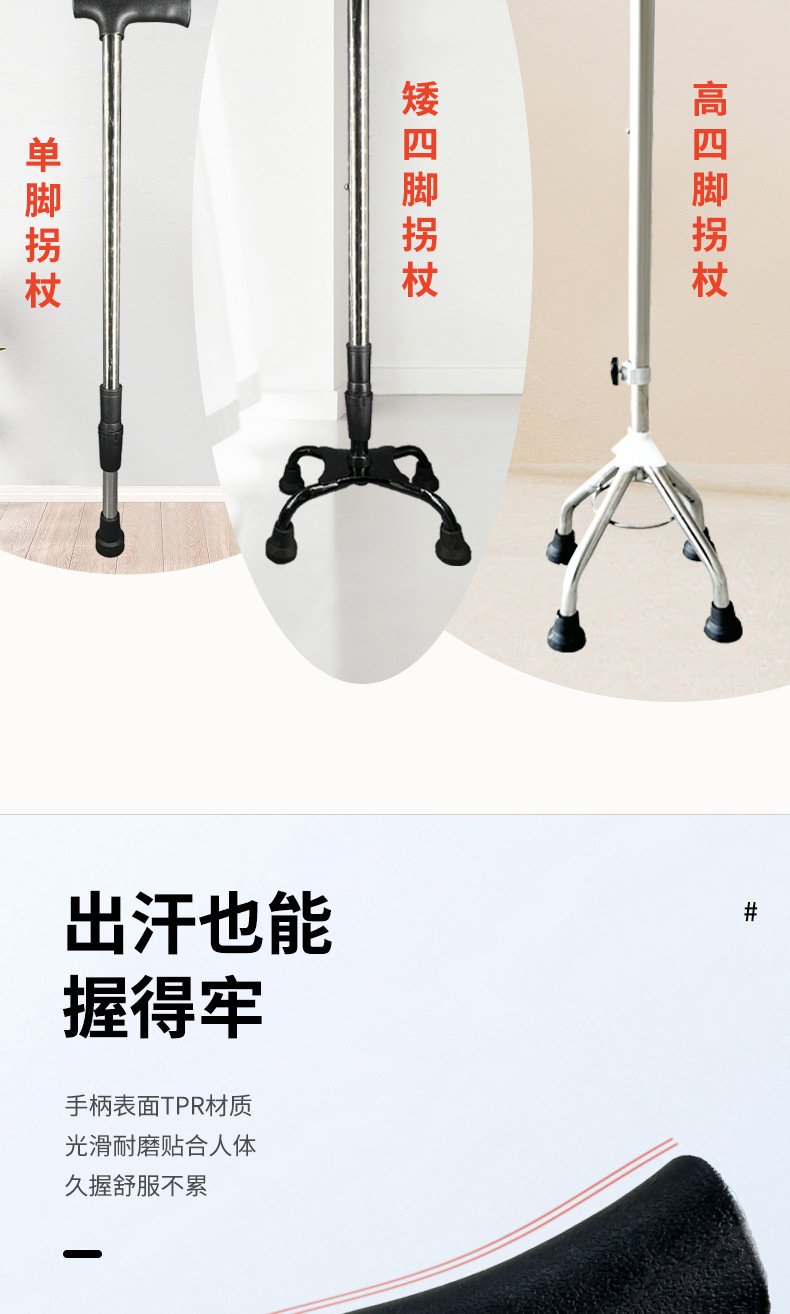 노인 높이 조절을위한 스테인레스 스틸 목발 미끄럼 4 코너 목발 골절 환자 재활 보행 보조 목발
