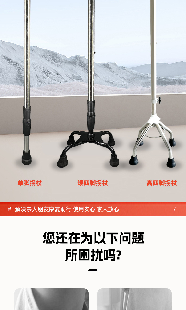 노인 높이 조절을위한 스테인레스 스틸 목발 미끄럼 4 코너 목발 골절 환자 재활 보행 보조 목발스토어 가기