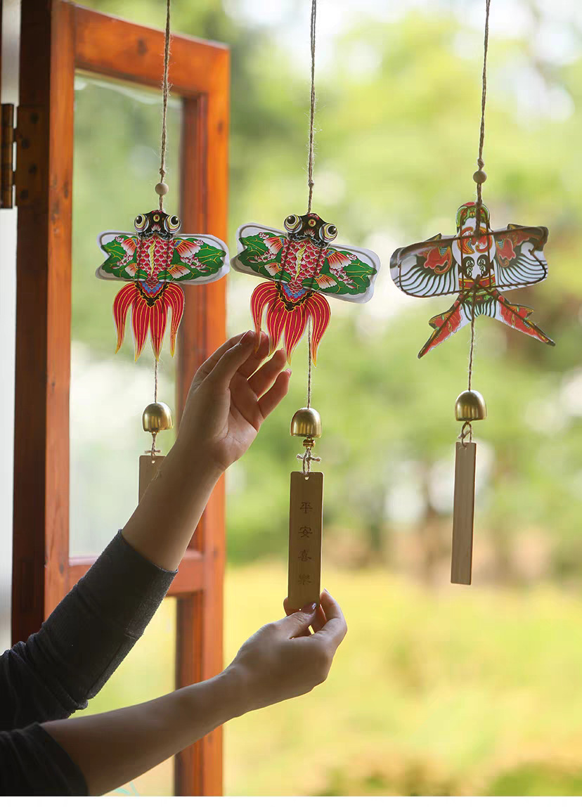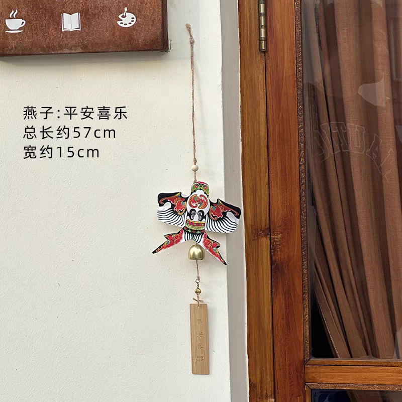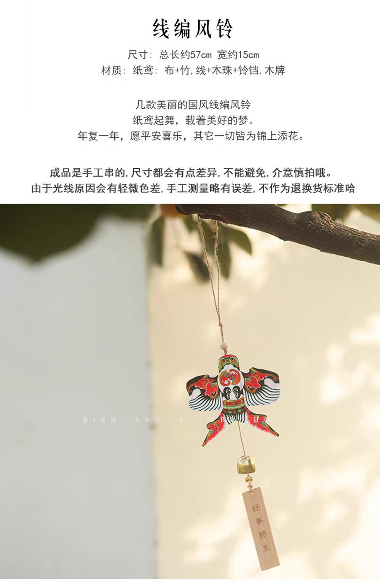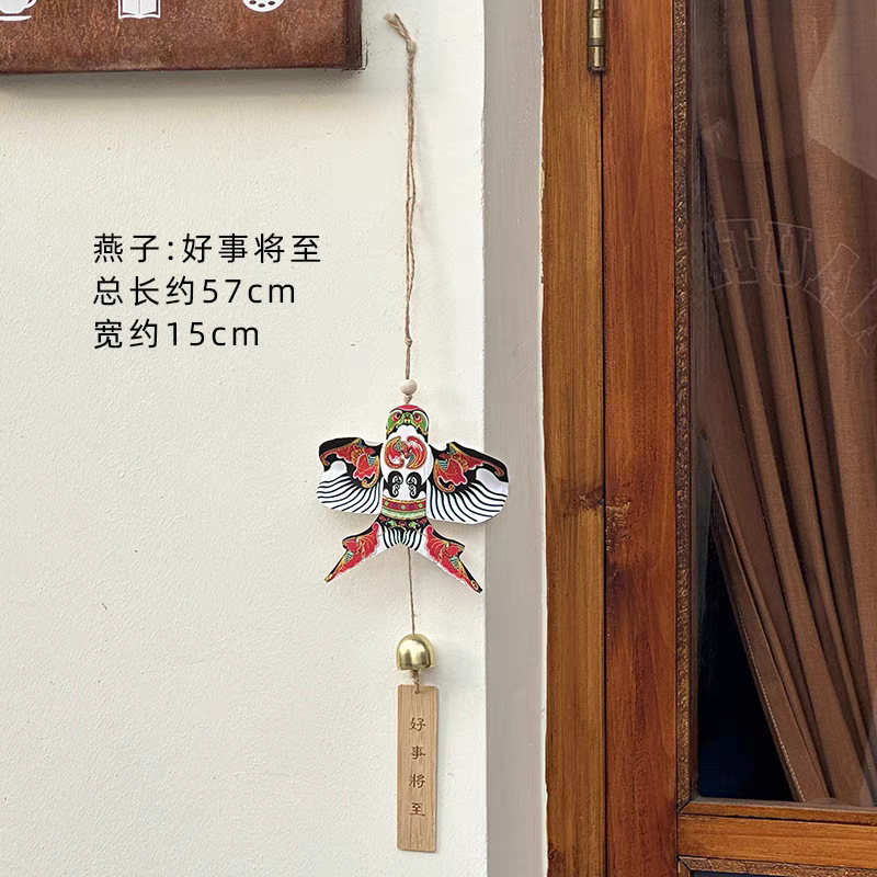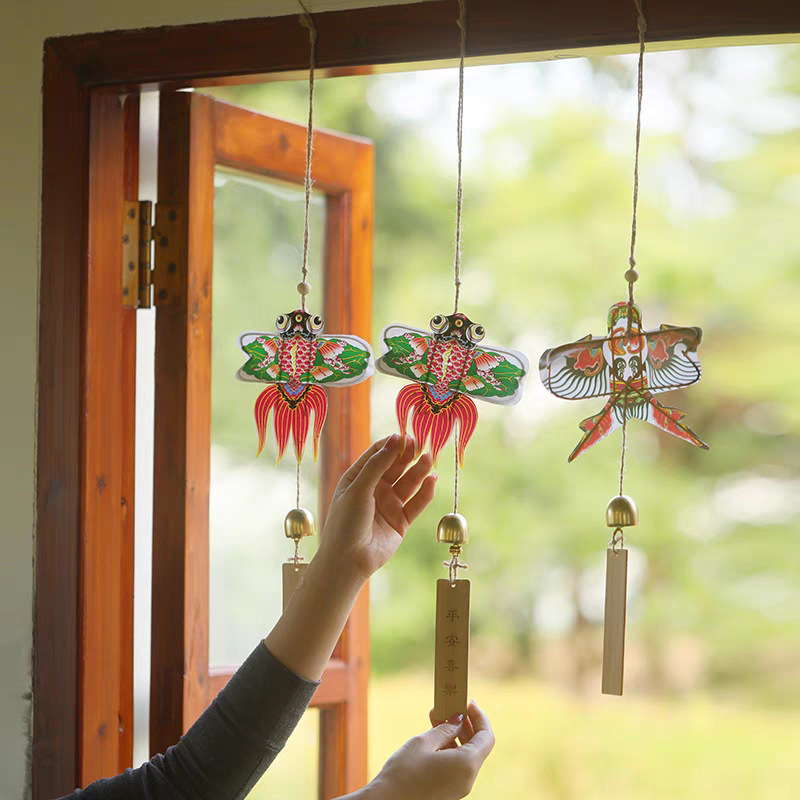 종이 연 모양 풍경종 장식품, 평안과 기쁨을 기원하는 패브릭 도어벨, 중국풍 집들이 장식, 정원, 마당, 민박 도매
