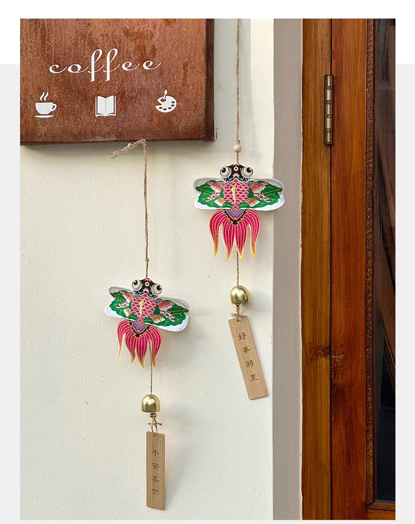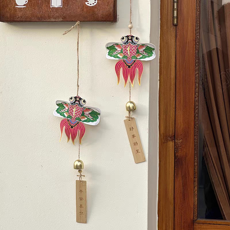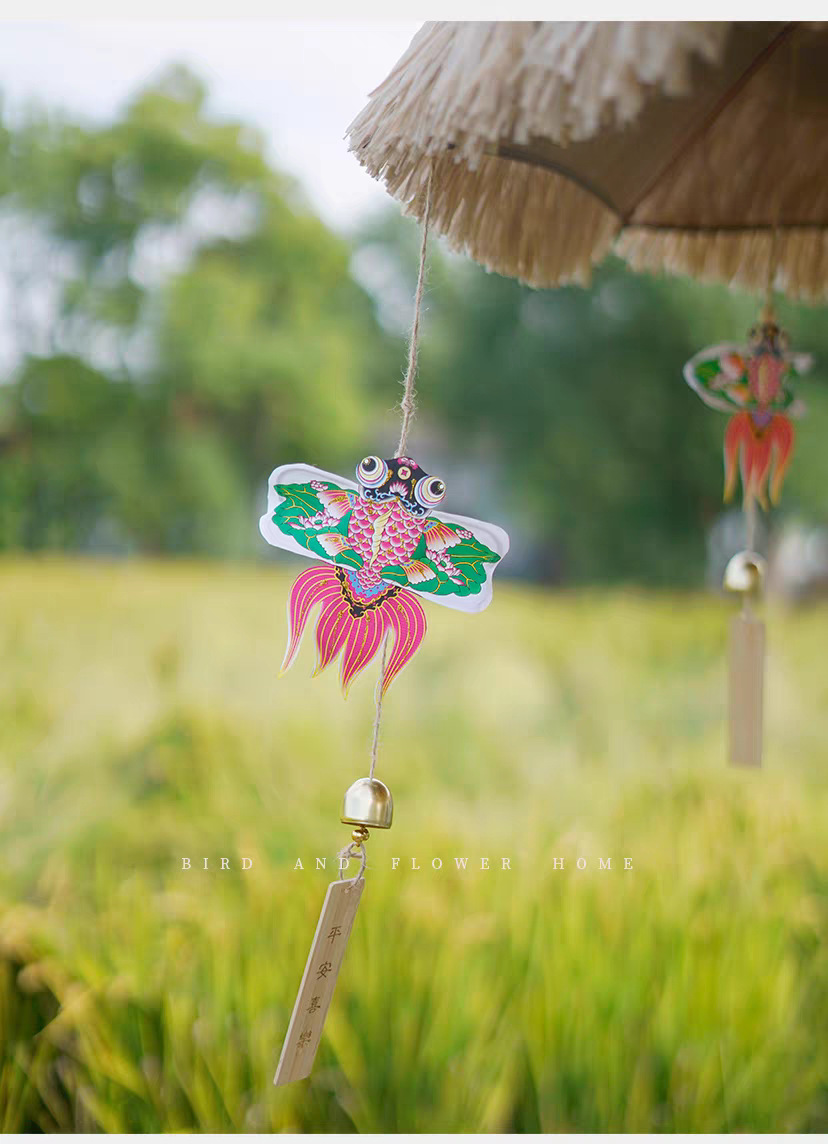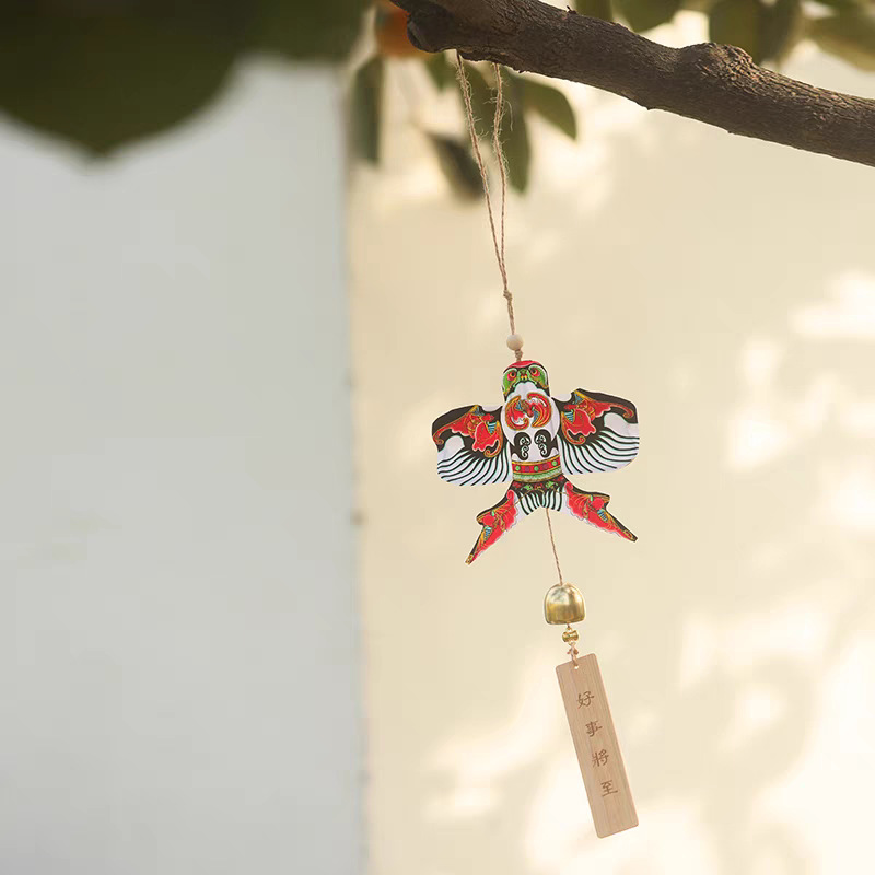 종이 연 모양 풍경종 장식품, 평안과 기쁨을 기원하는 패브릭 도어벨, 중국풍 집들이 장식, 정원, 마당, 민박 도매