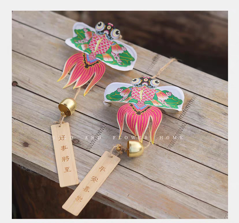 종이 연 모양 풍경종 장식품, 평안과 기쁨을 기원하는 패브릭 도어벨, 중국풍 집들이 장식, 정원, 마당, 민박 도매스토어 가기
