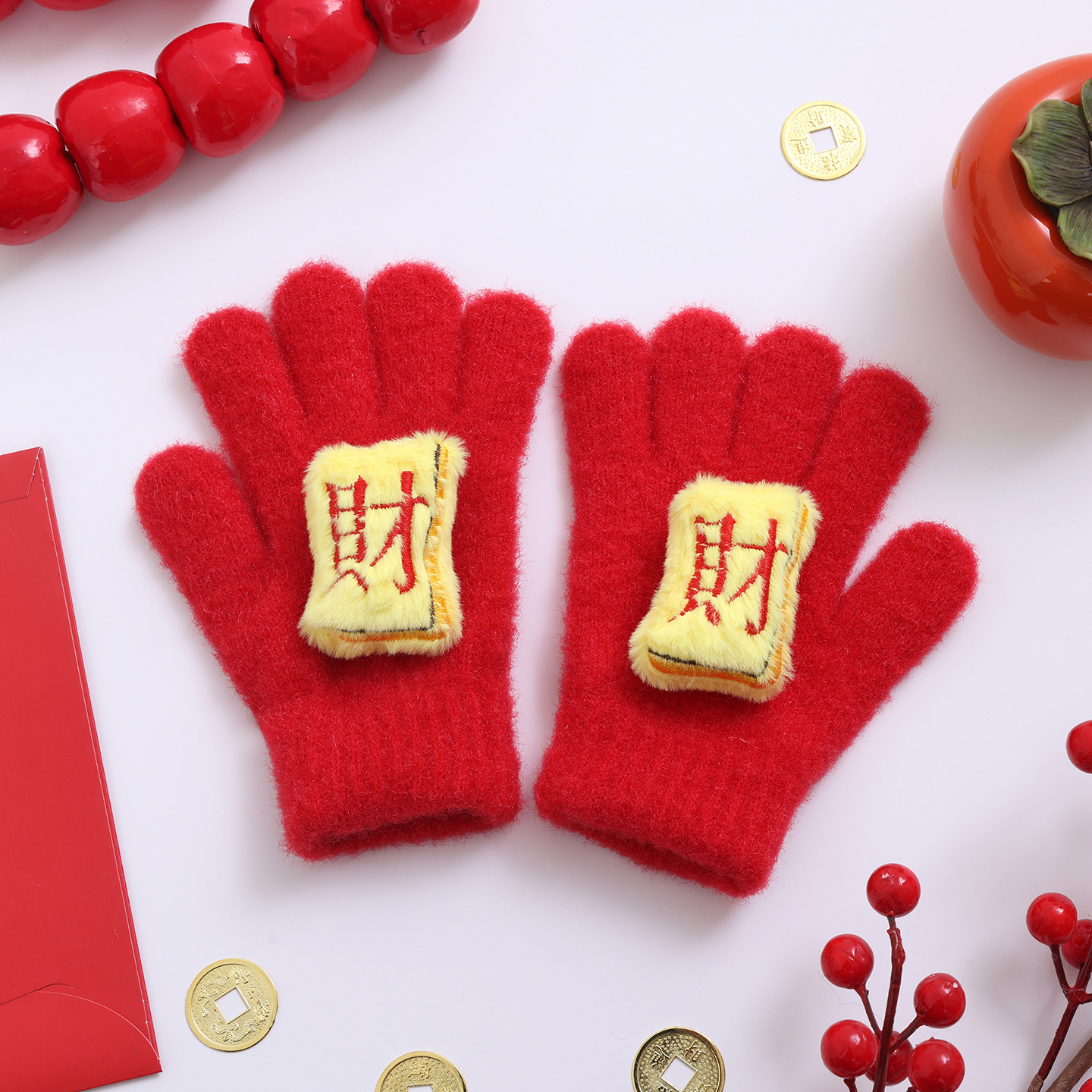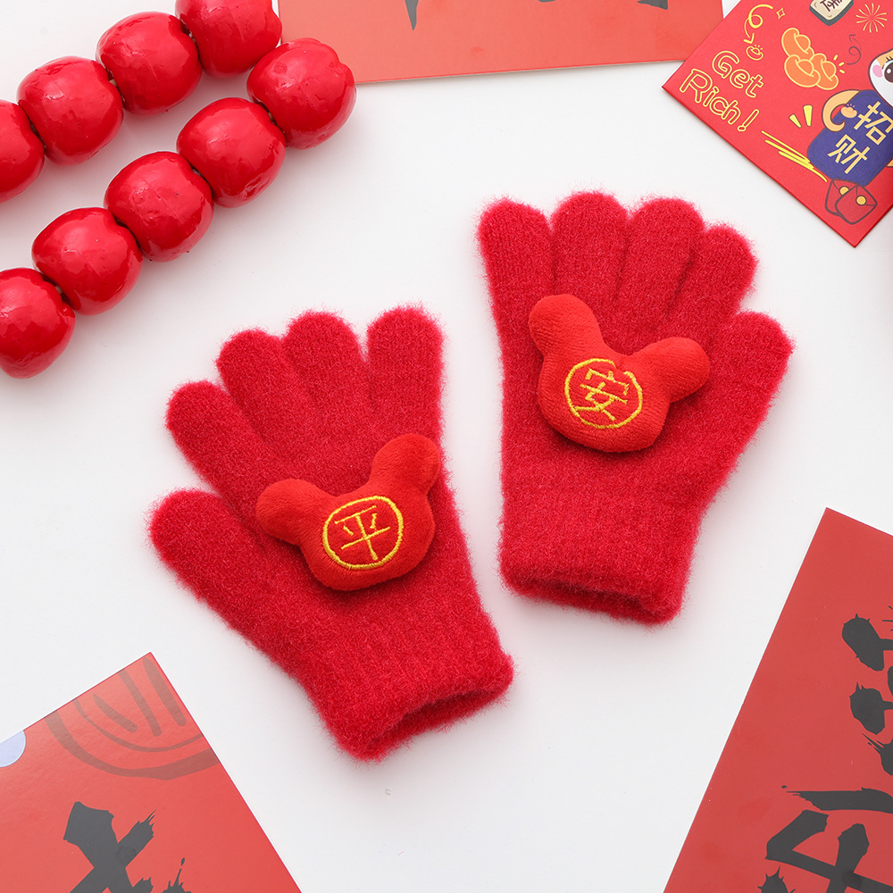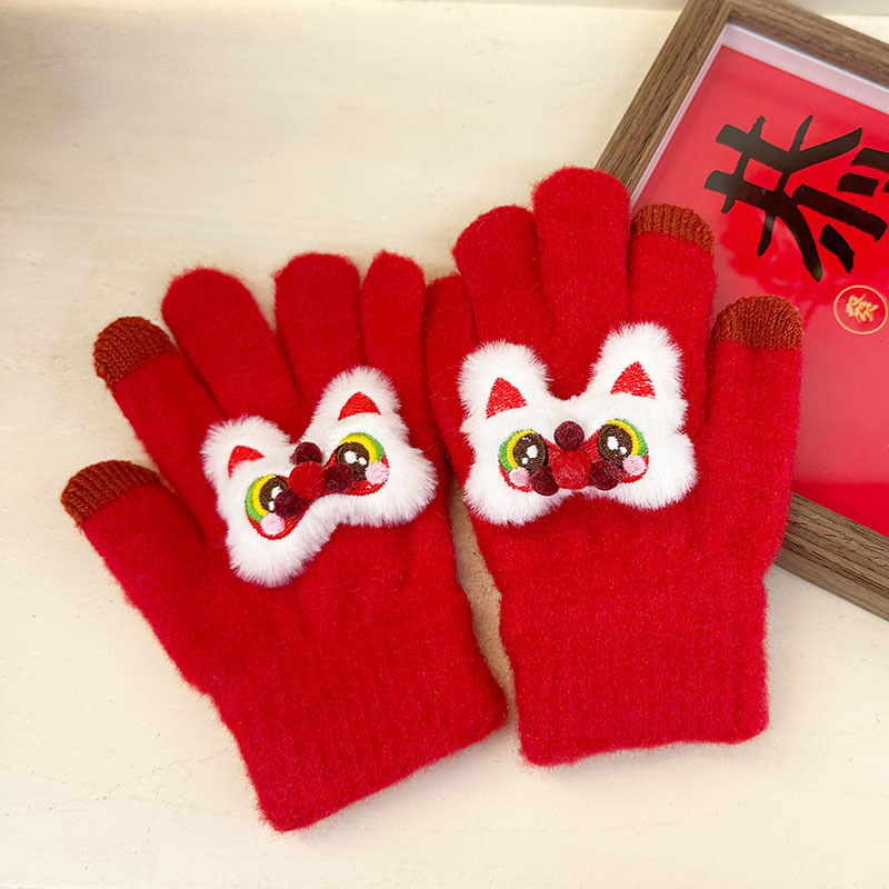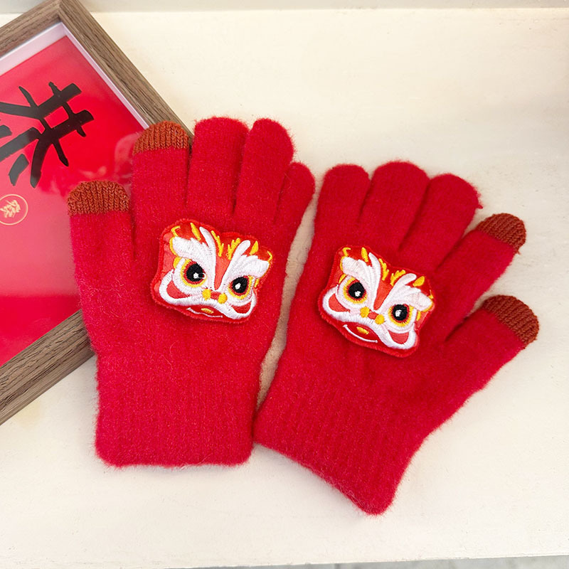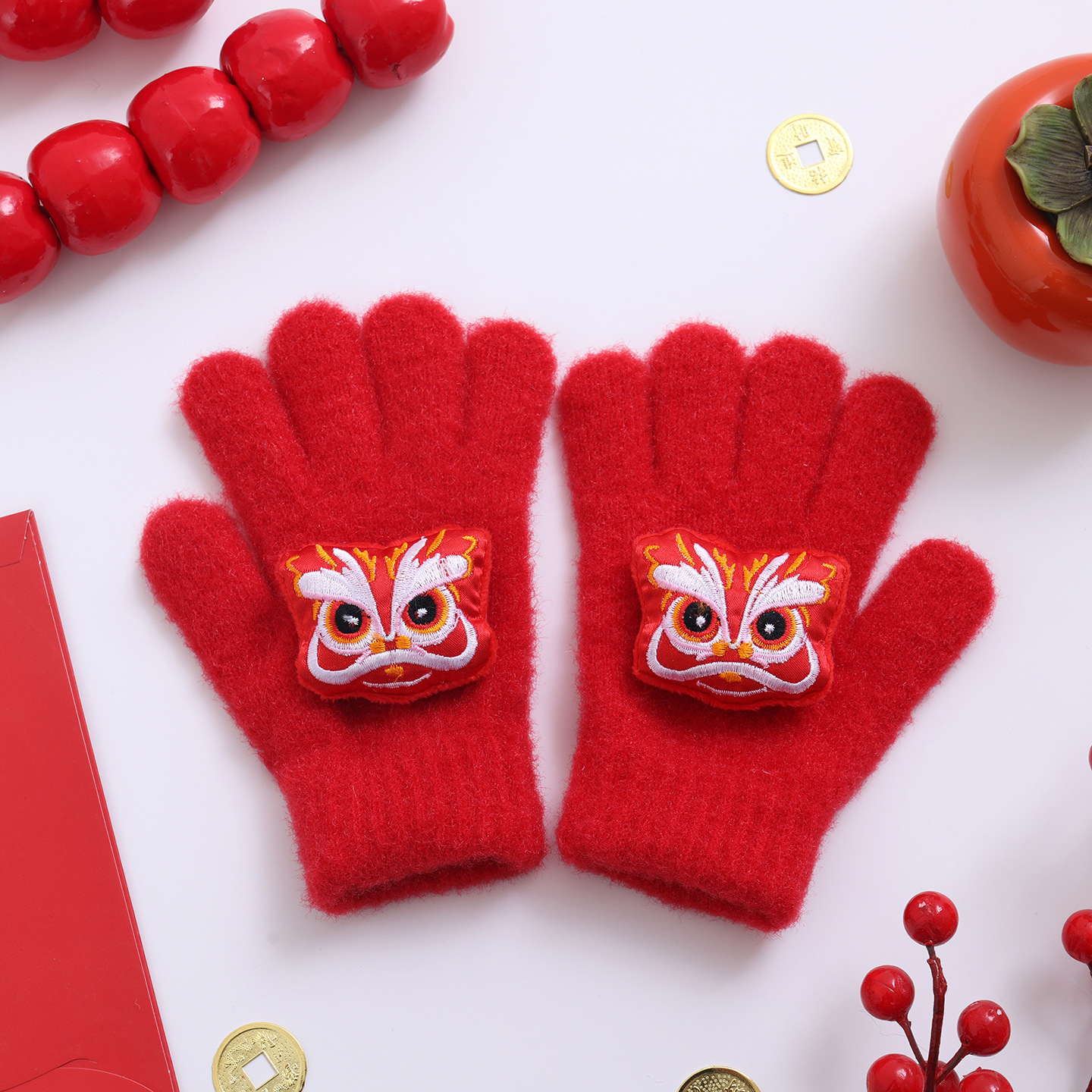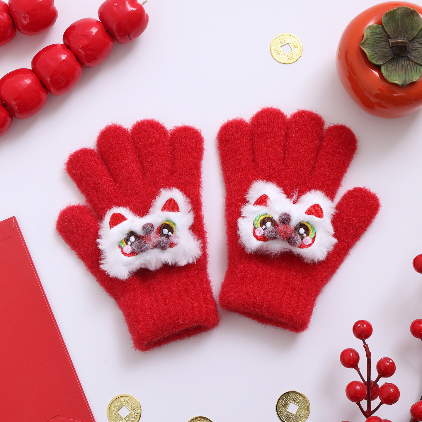 새해 빨간색 축제 어린이 장갑 크리스마스 만화 아기 장갑 가을, 겨울 사자 춤 다섯 손가락 아기 장갑