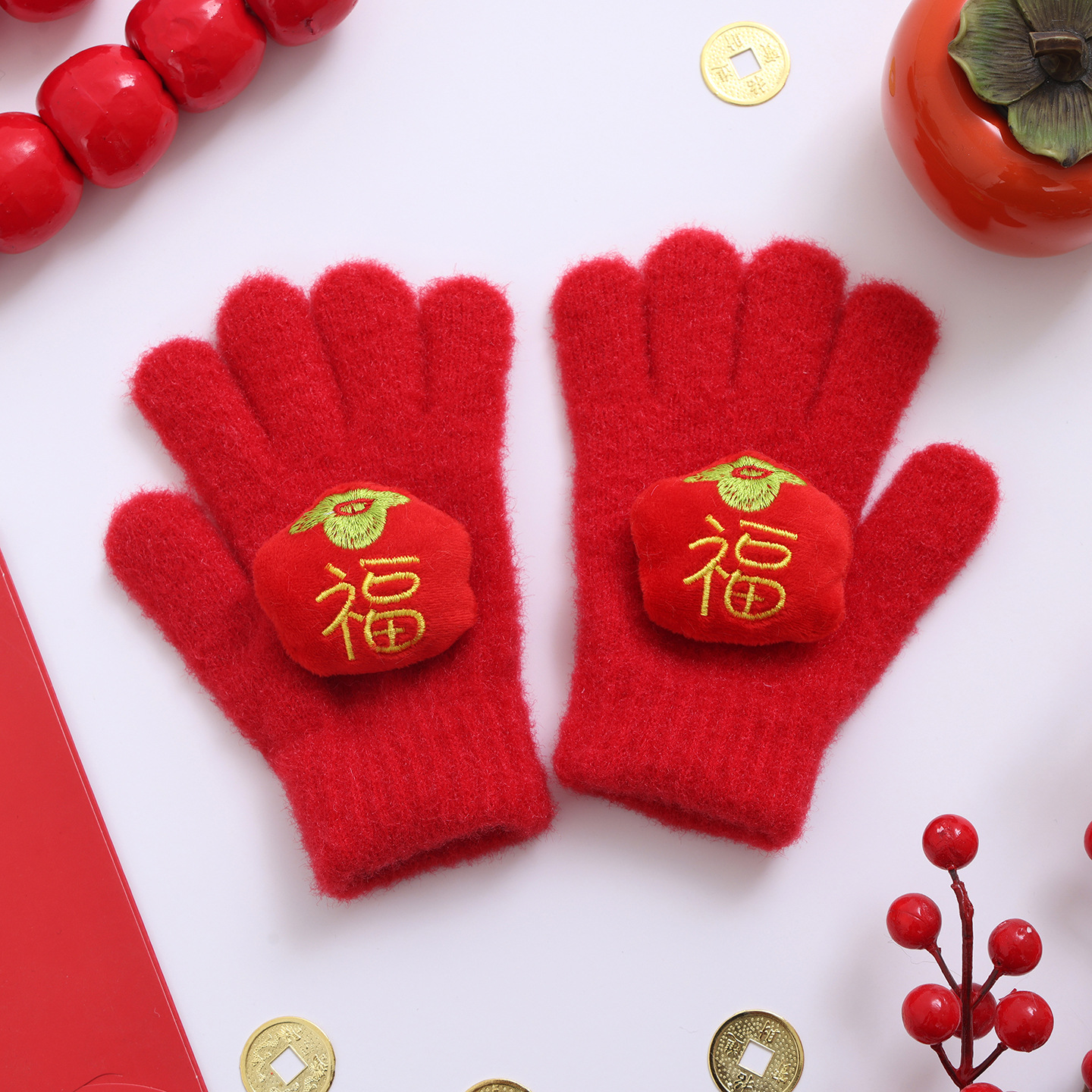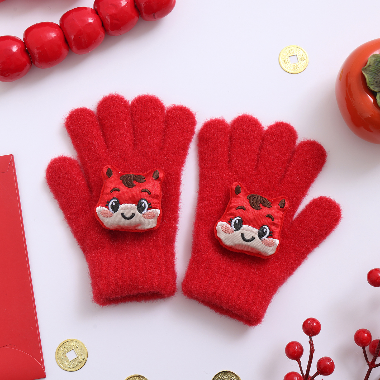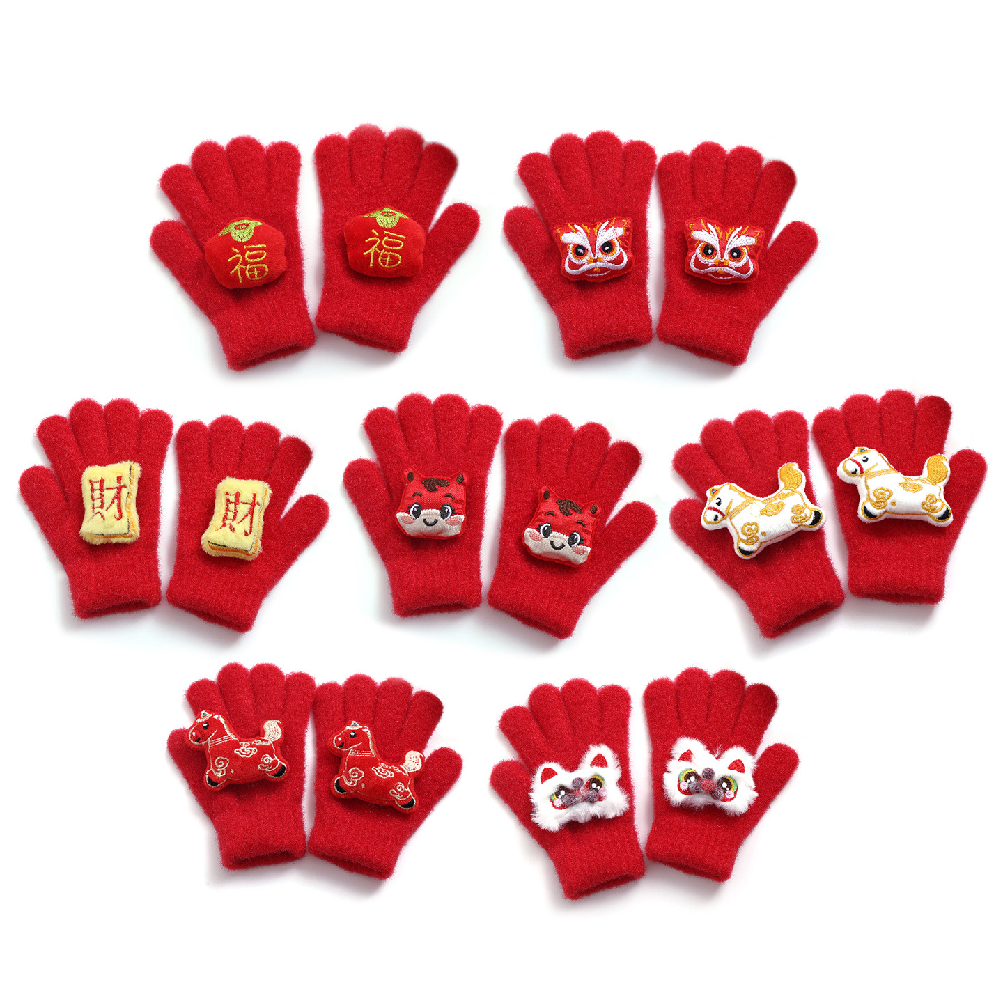 새해 빨간색 축제 어린이 장갑 크리스마스 만화 아기 장갑 가을, 겨울 사자 춤 다섯 손가락 아기 장갑스토어 가기