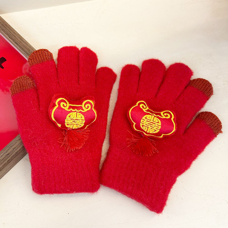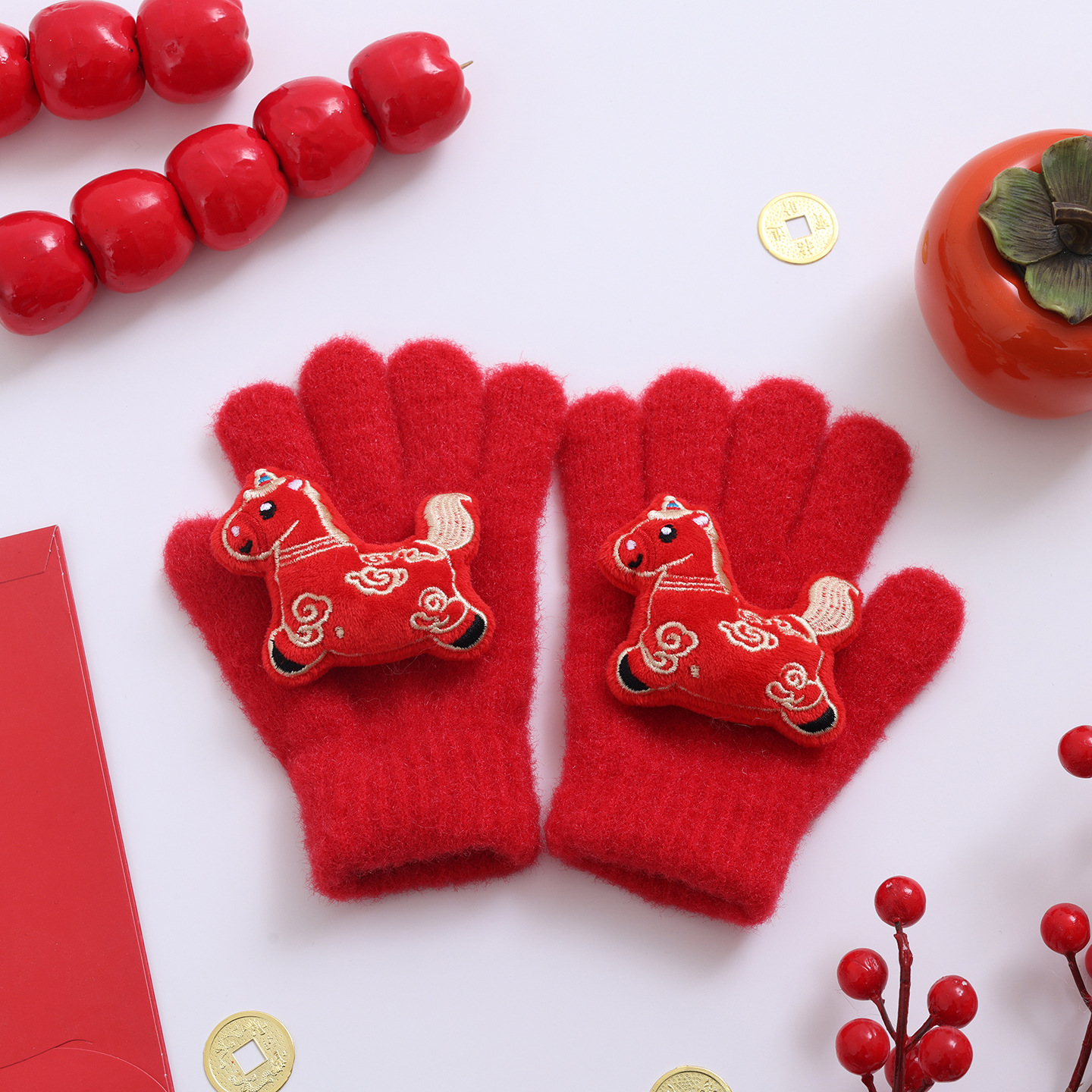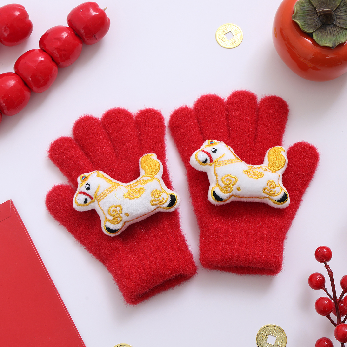 새해 빨간색 축제 어린이 장갑 크리스마스 만화 아기 장갑 가을, 겨울 사자 춤 다섯 손가락 아기 장갑스토어 가기