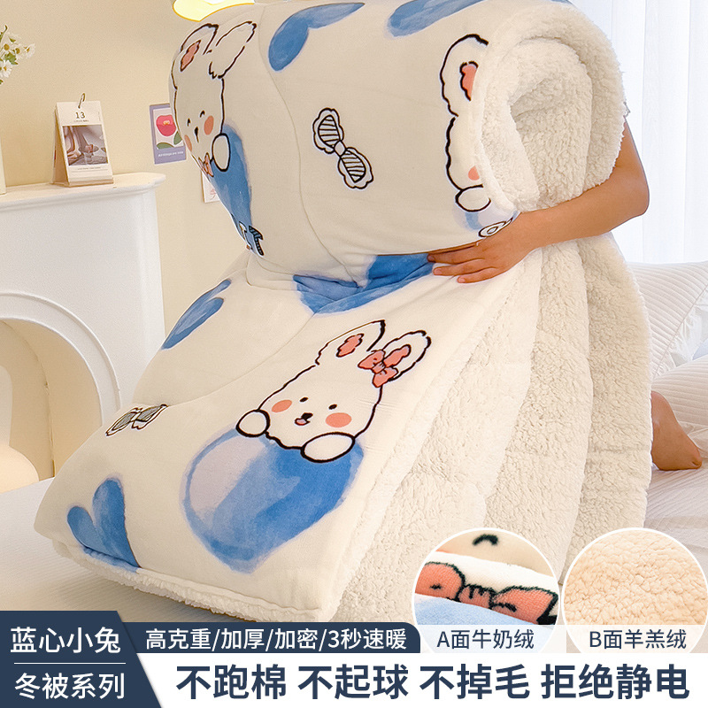 양털 이불 겨울 이불 패딩 따뜻한 이불 코어 겨울 기숙사 단일 학생 겨울 침구 공간 이불스토어 가기