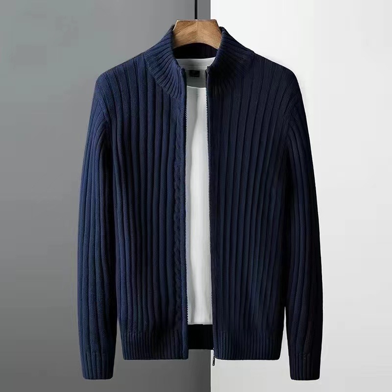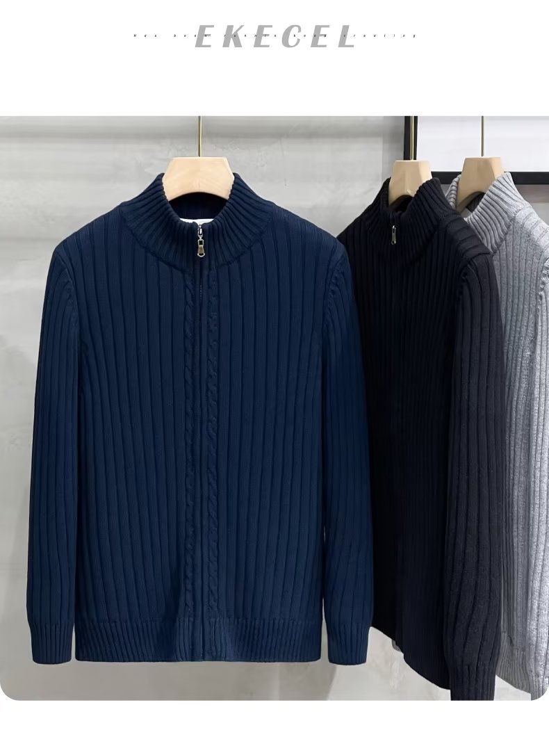 2025 봄과 가을 새로운 간단한 캐주얼 솔리드 컬러 카디건 스웨터 남자 칼라 올 매치 지퍼 스웨터 재킷 트렌디스토어 가기